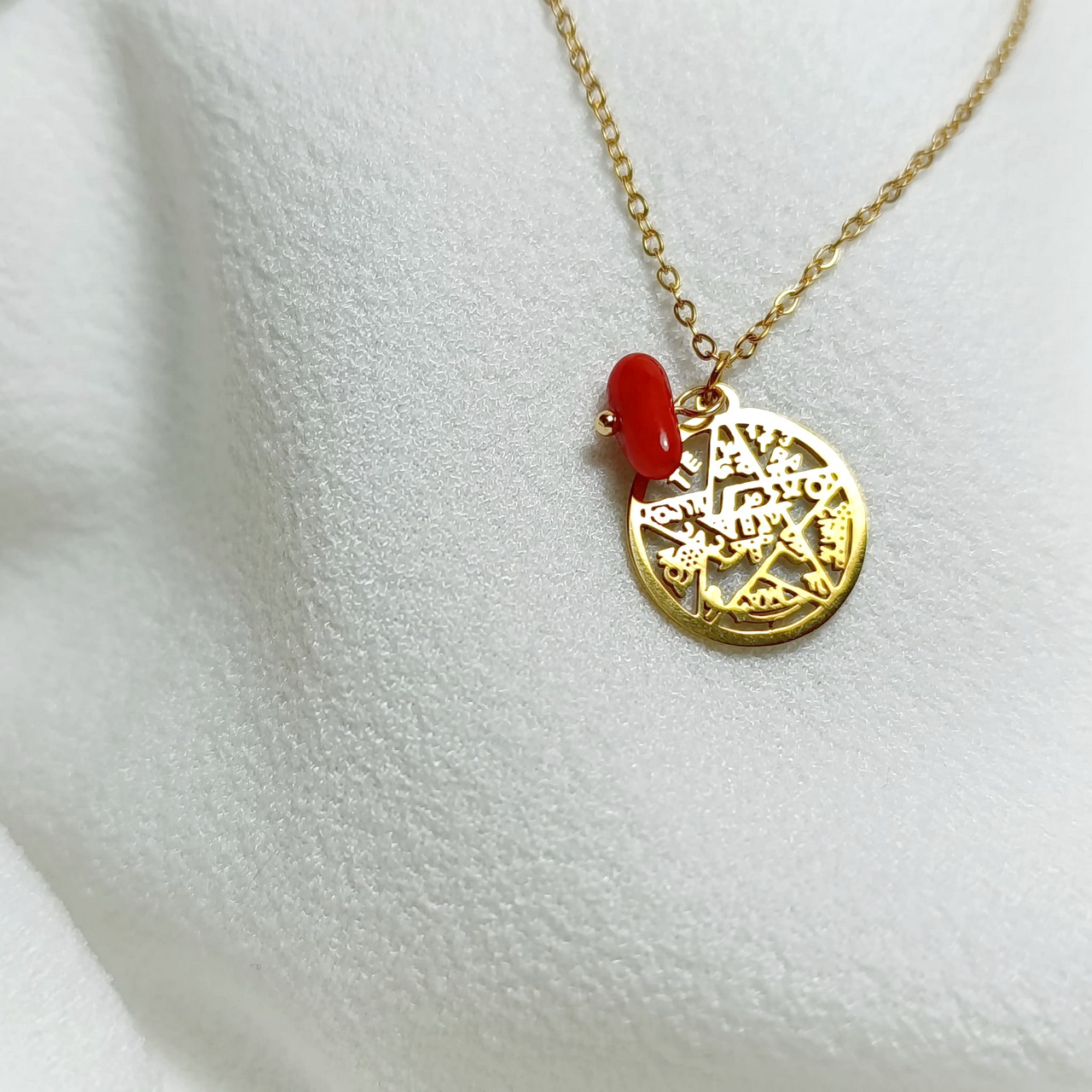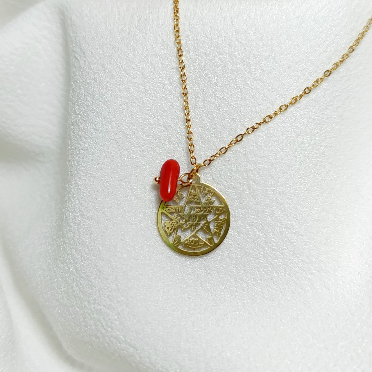 El tetragamatón es el símbolo del principio creador, el que organiza el caos. Símbolo central con coral rojo.