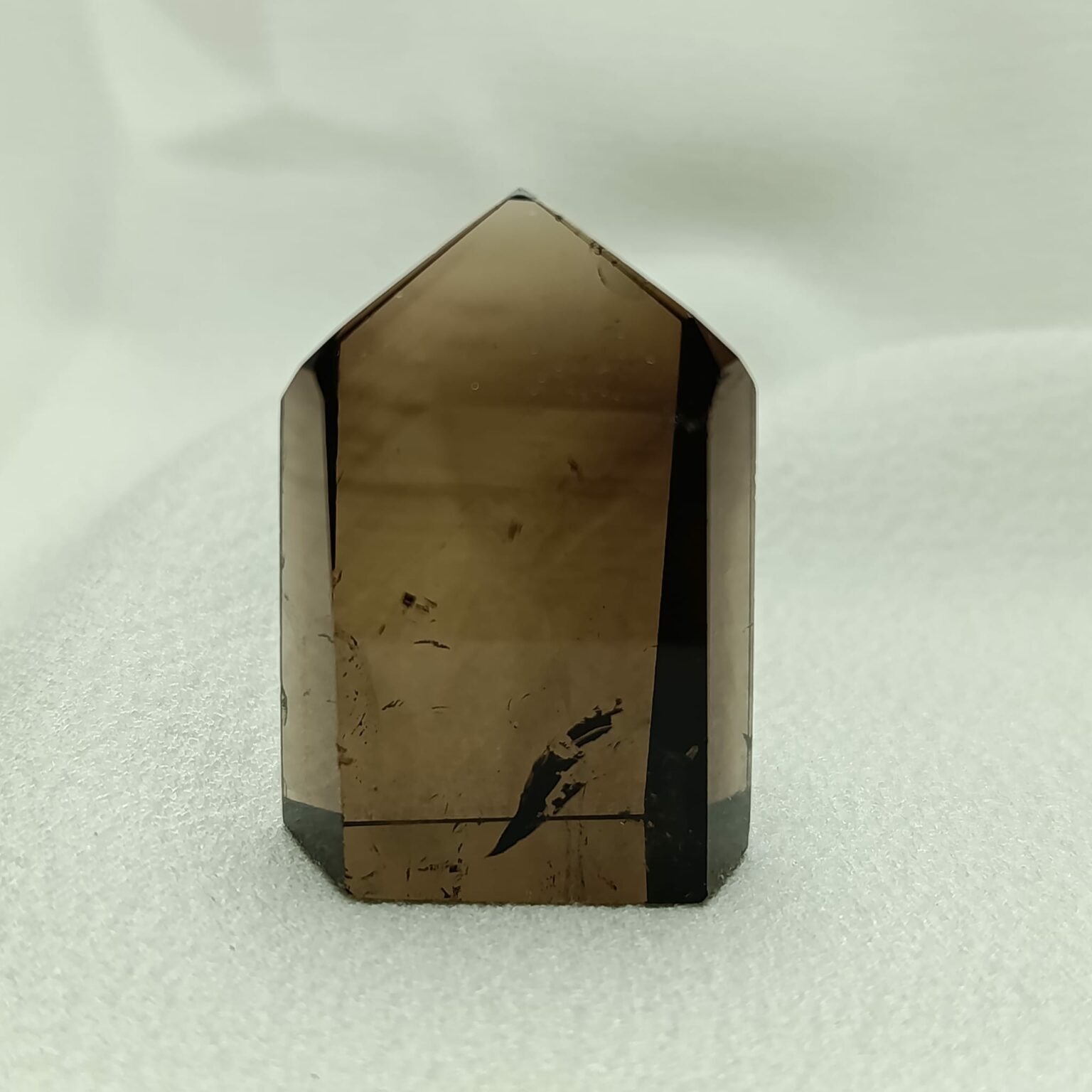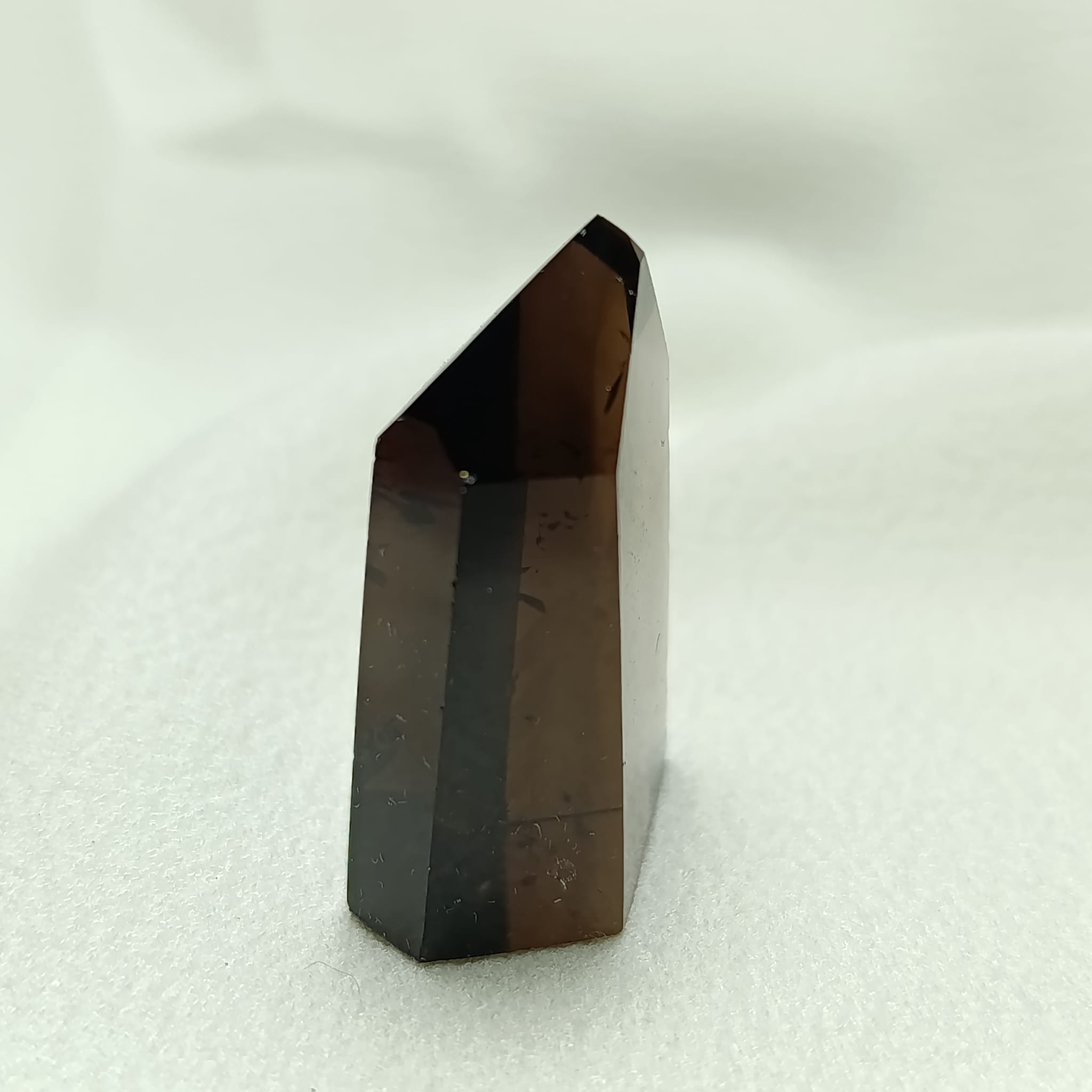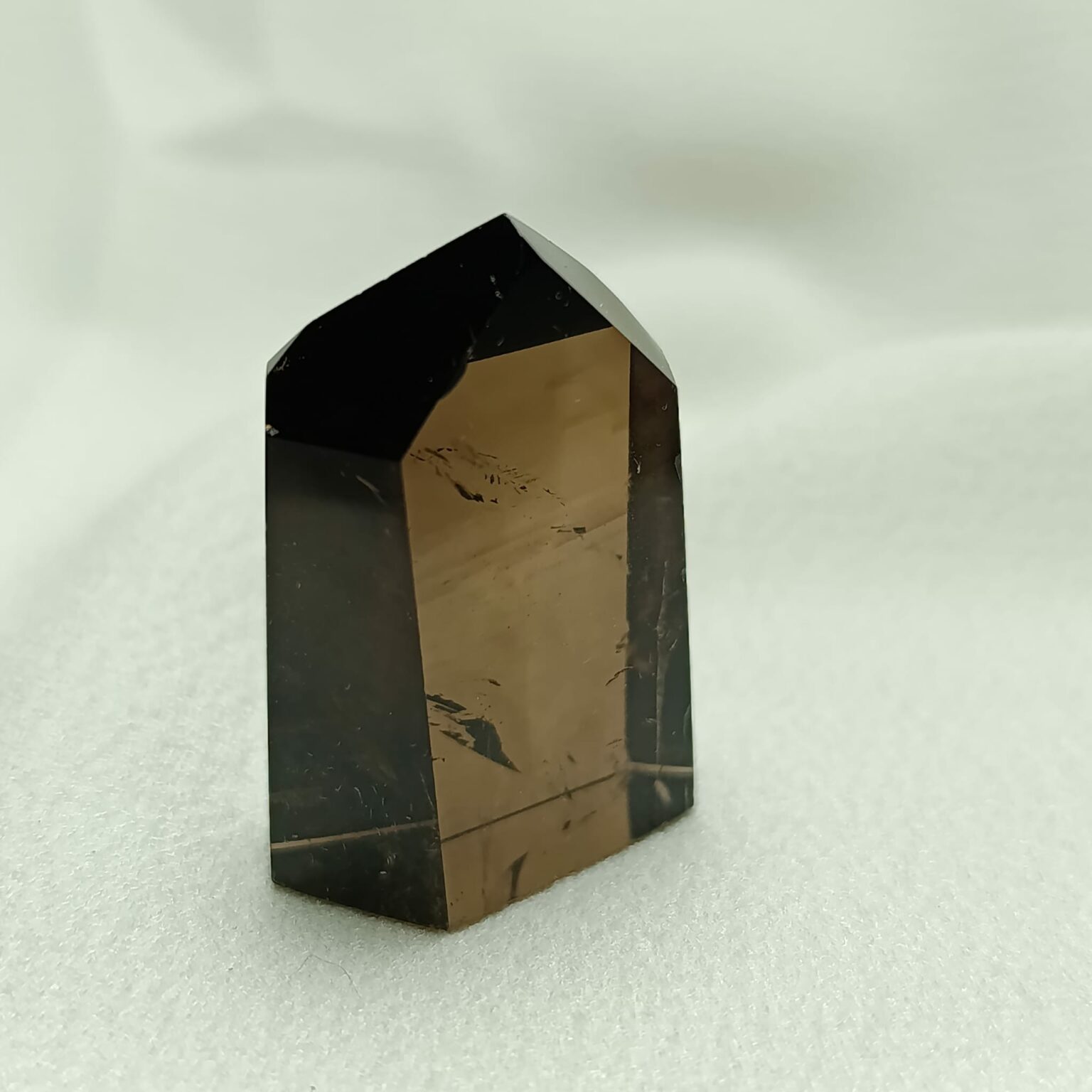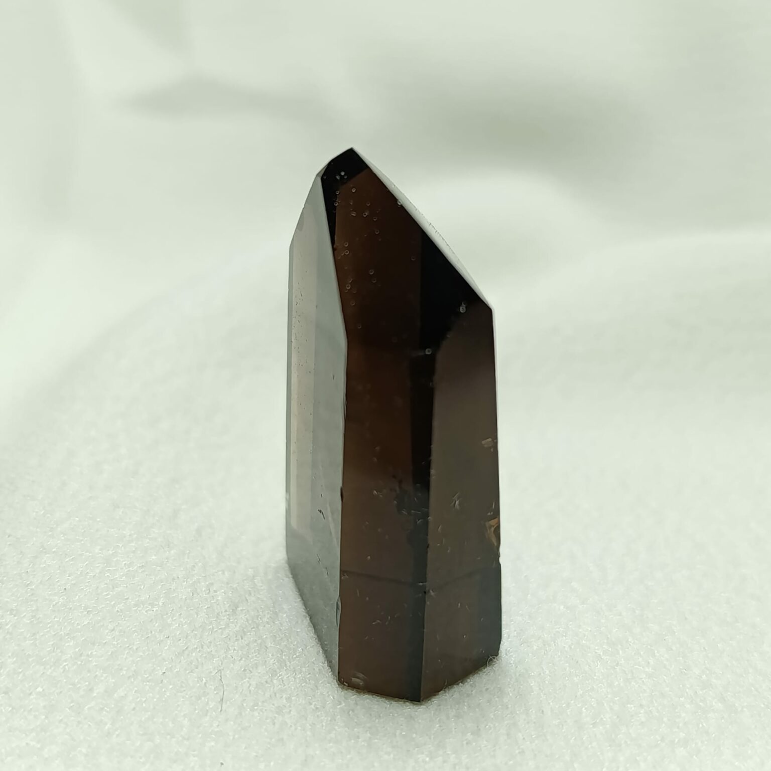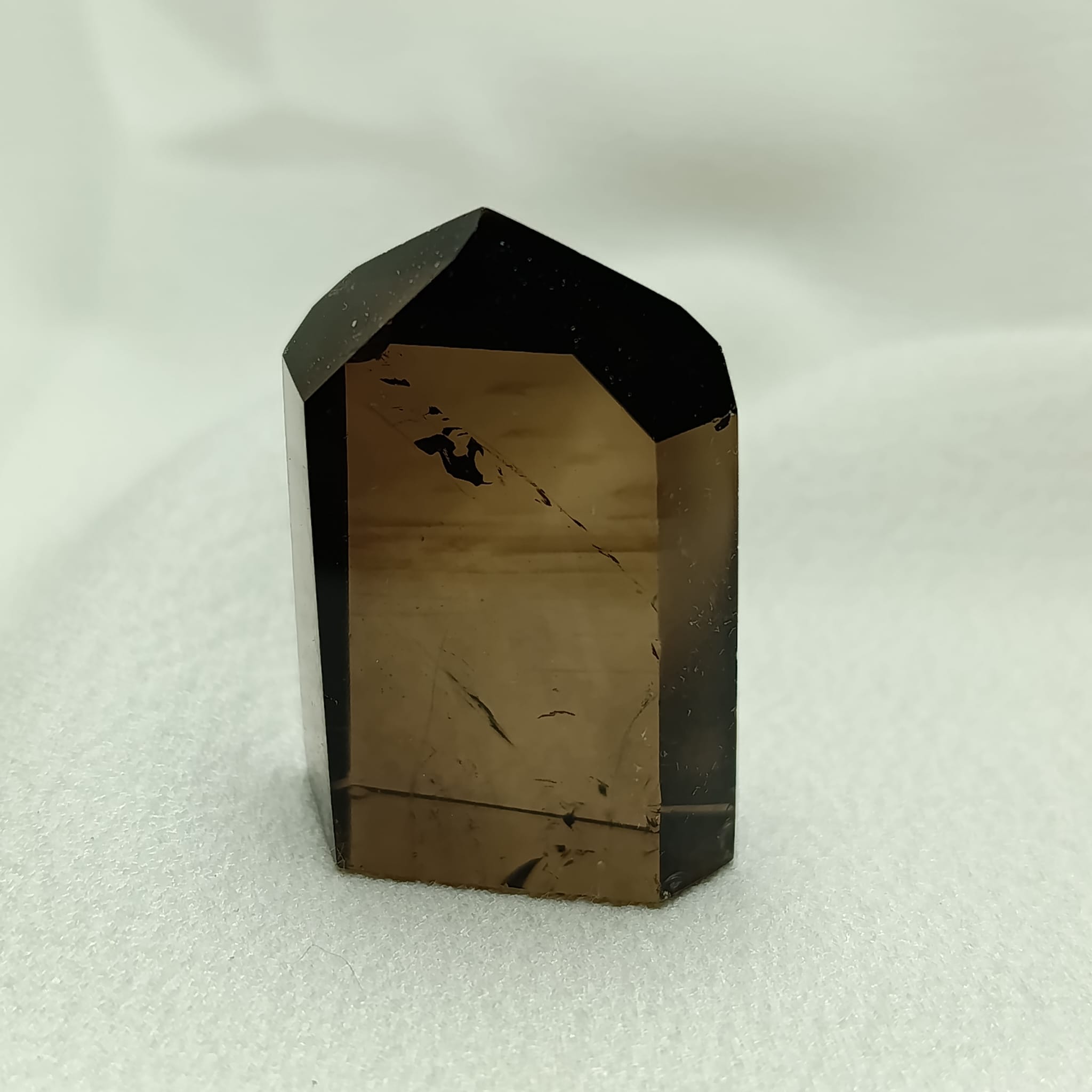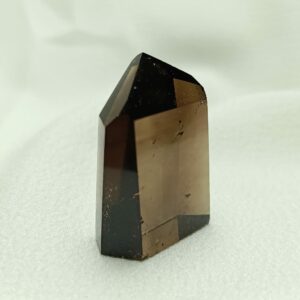 El cuarzo ahumado tiene dureza de 7 en la escala de Mohs. Sistema Trigonal- Red hexagonal. Pieza de color marrón ahumado claro. Translúcida clara.