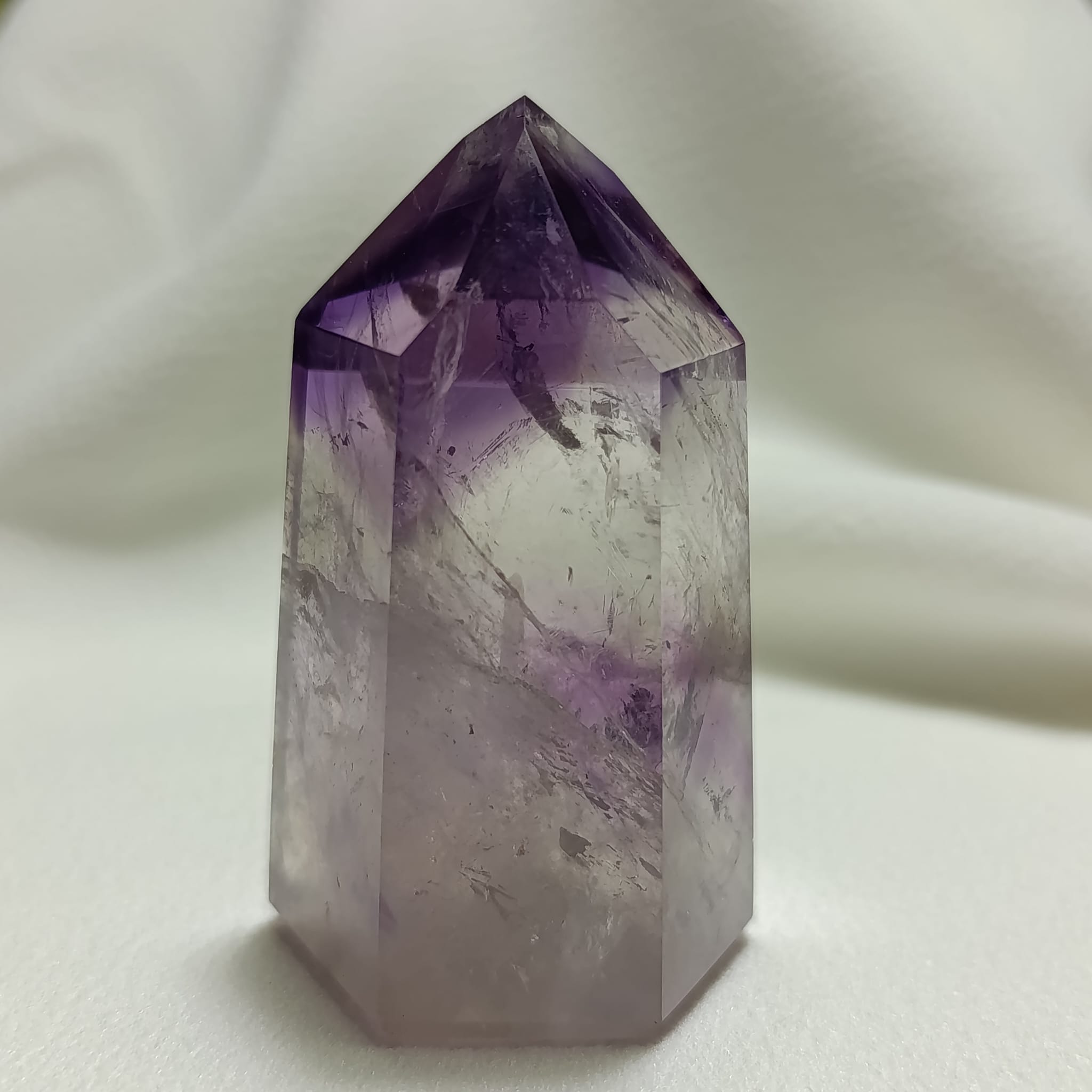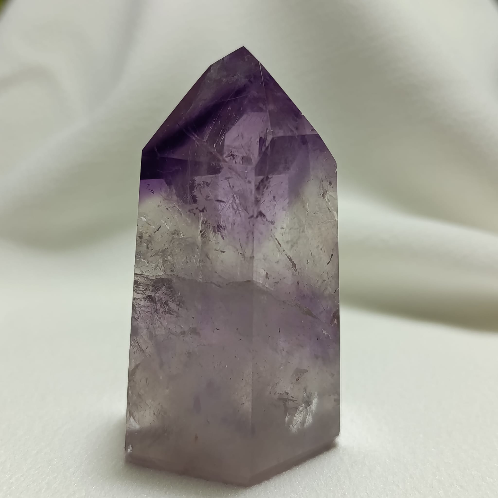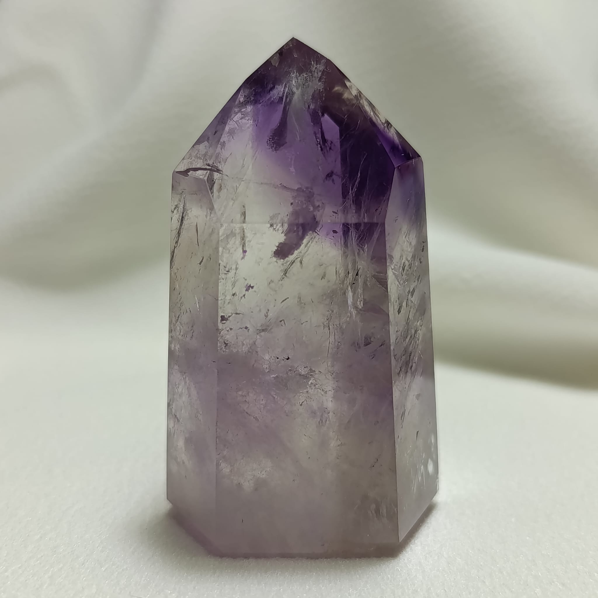 Cuarzo amatista en punta natural. Sistema trigonal (red hexagonal). Dureza 7 (Mohs)