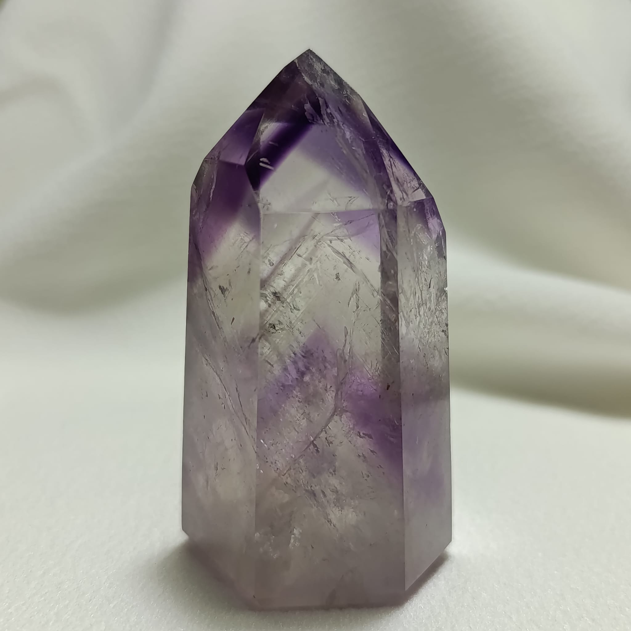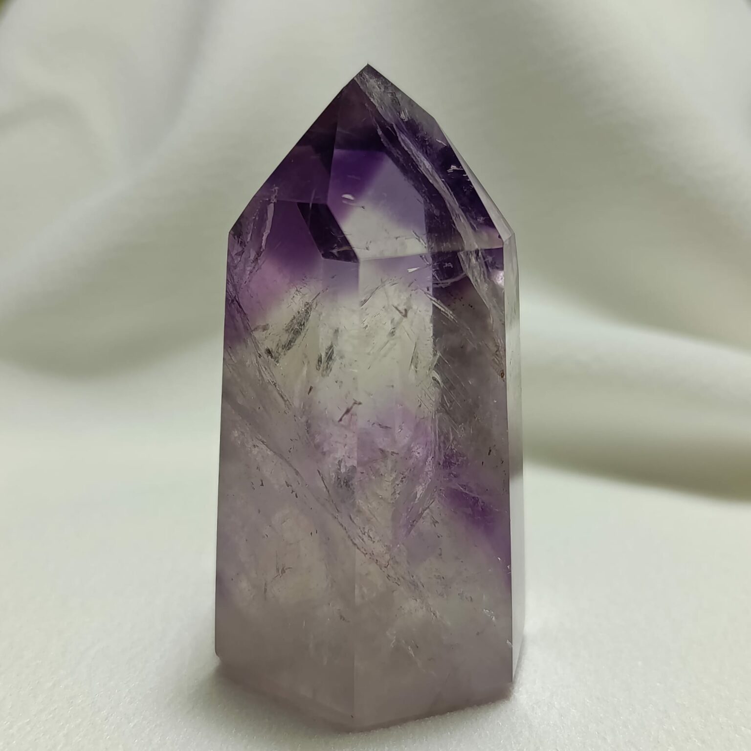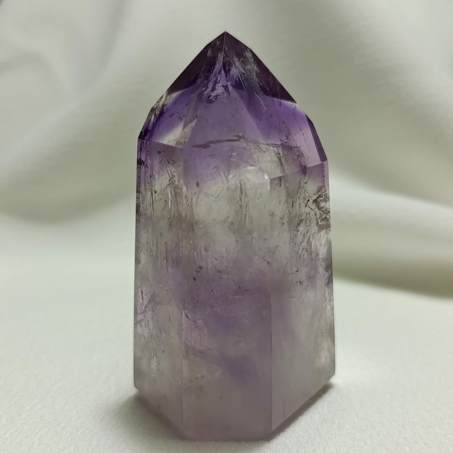 Cuarzo amatista en punta natural. Sistema trigonal (red hexagonal). Dureza 7 (Mohs)