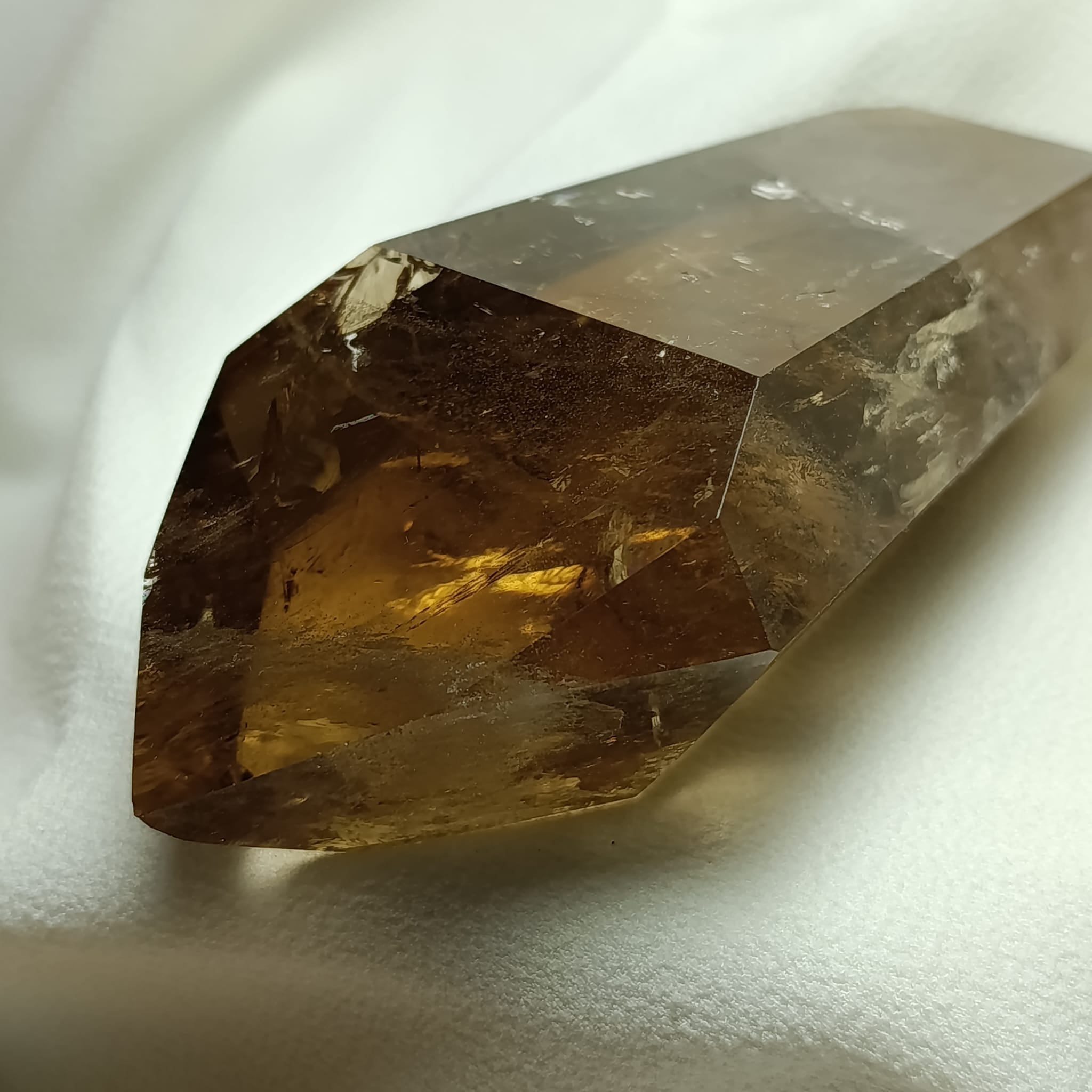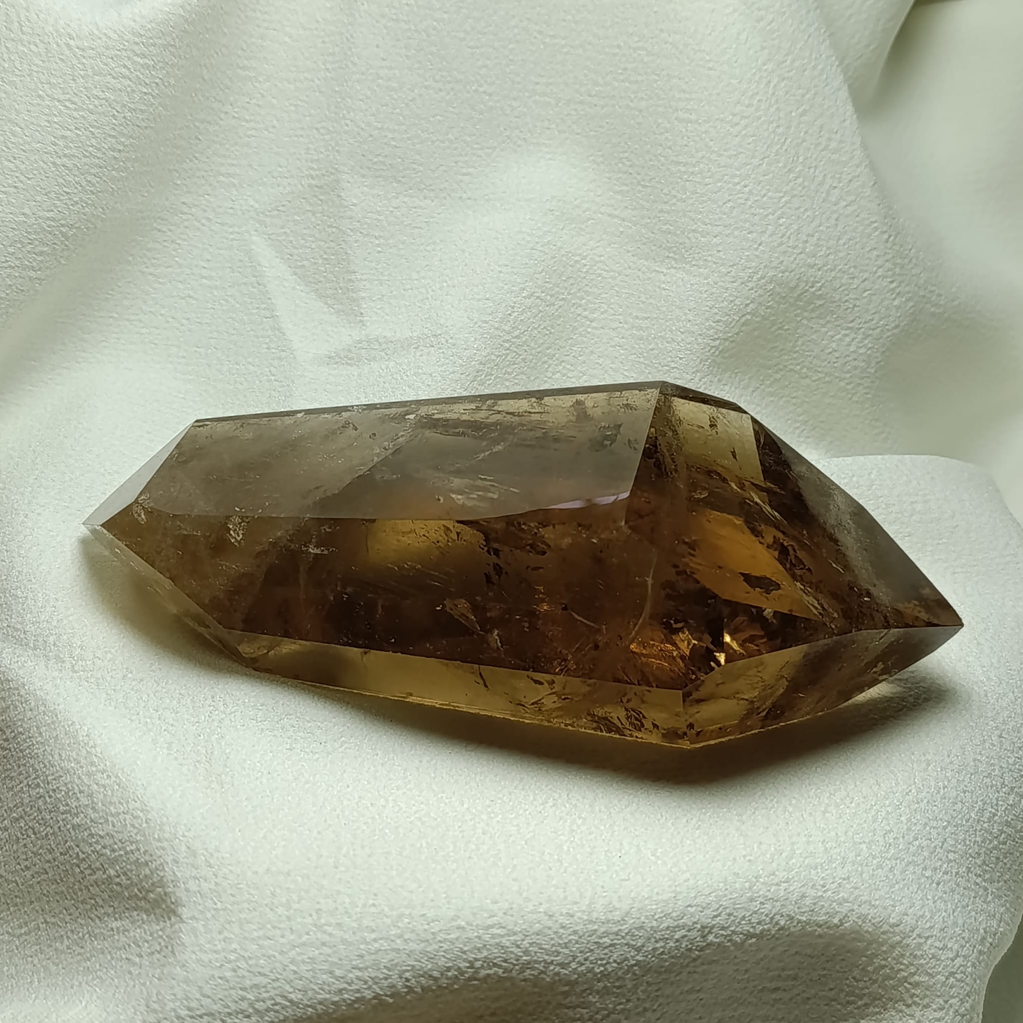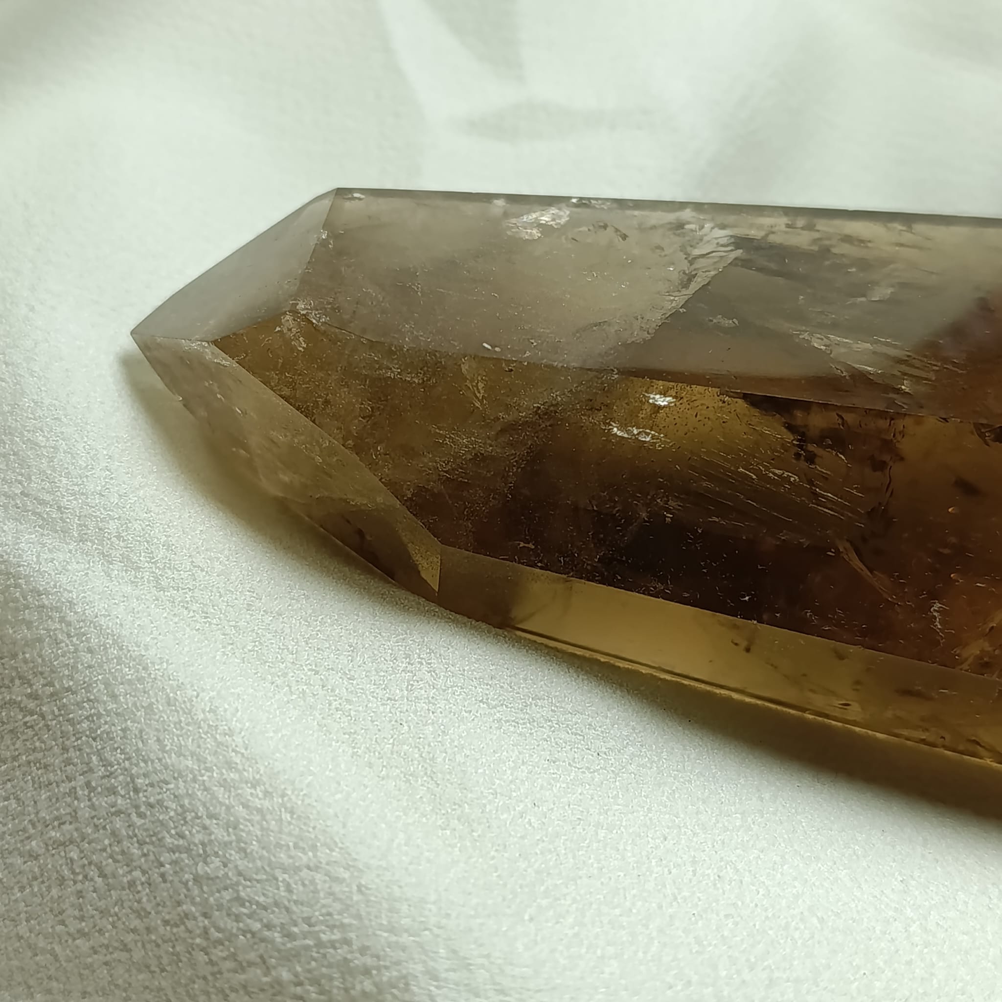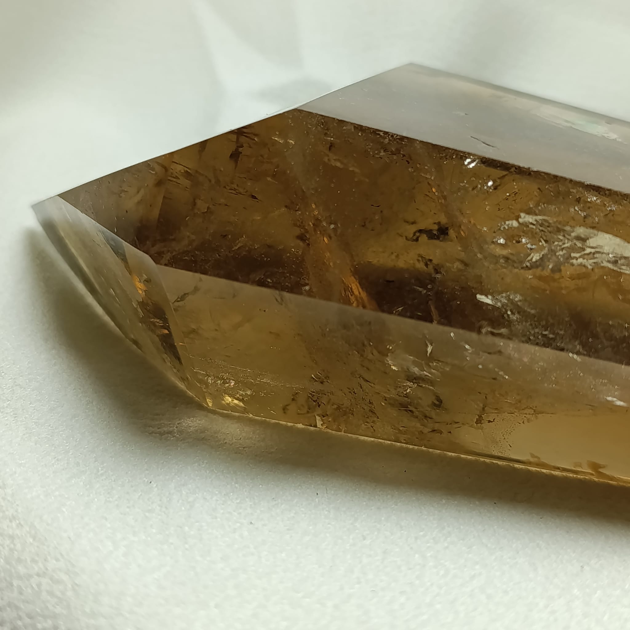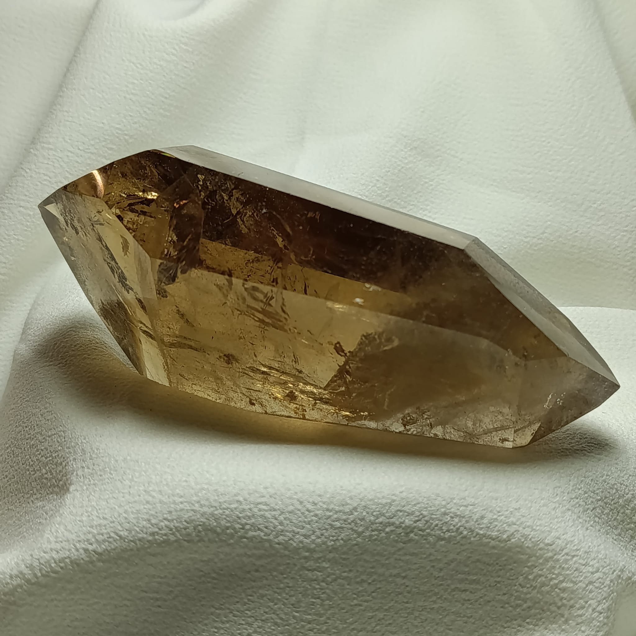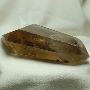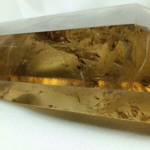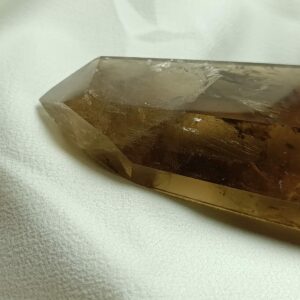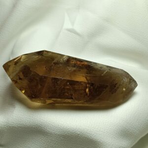 El cuarzo citrino tiene dureza de 7 en la escala de Mohs. Sistema Trigonal. Red hexagonal.