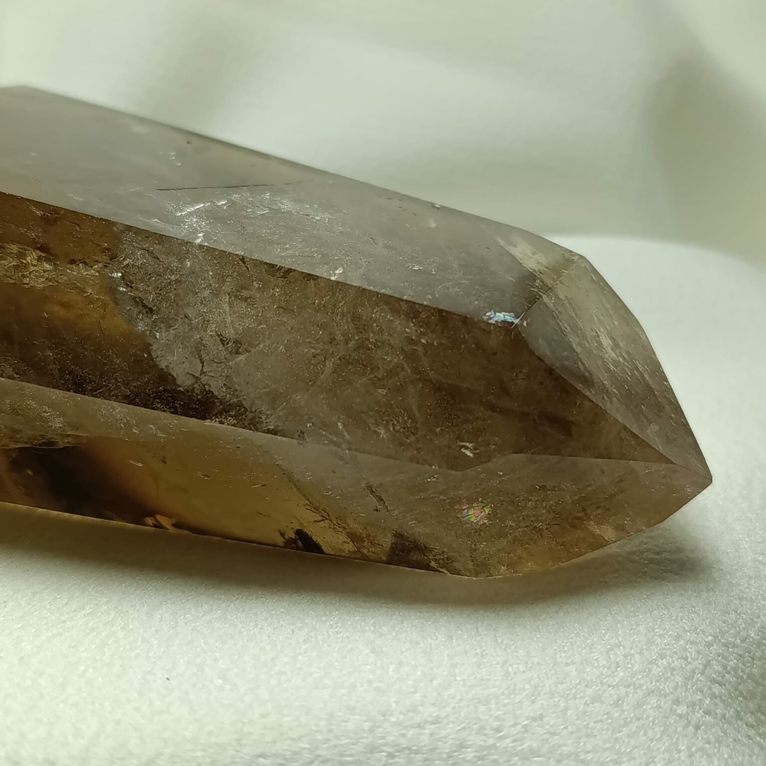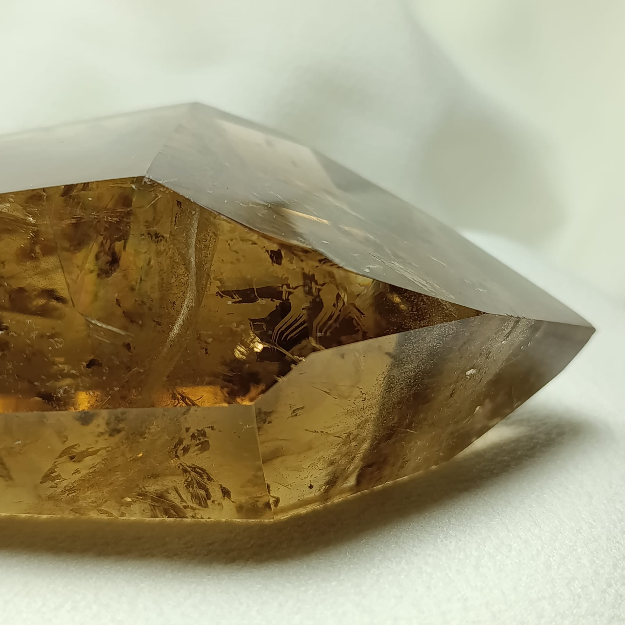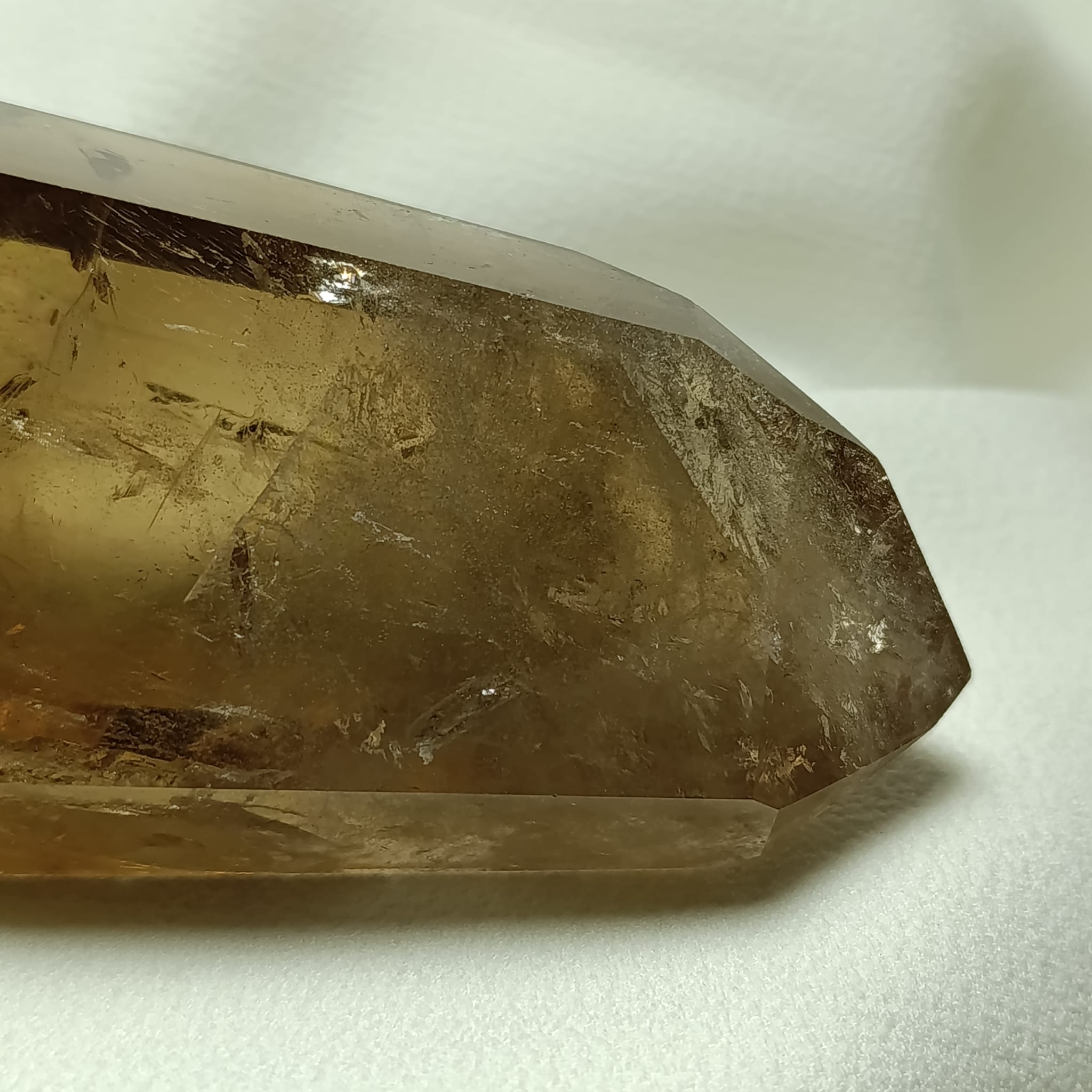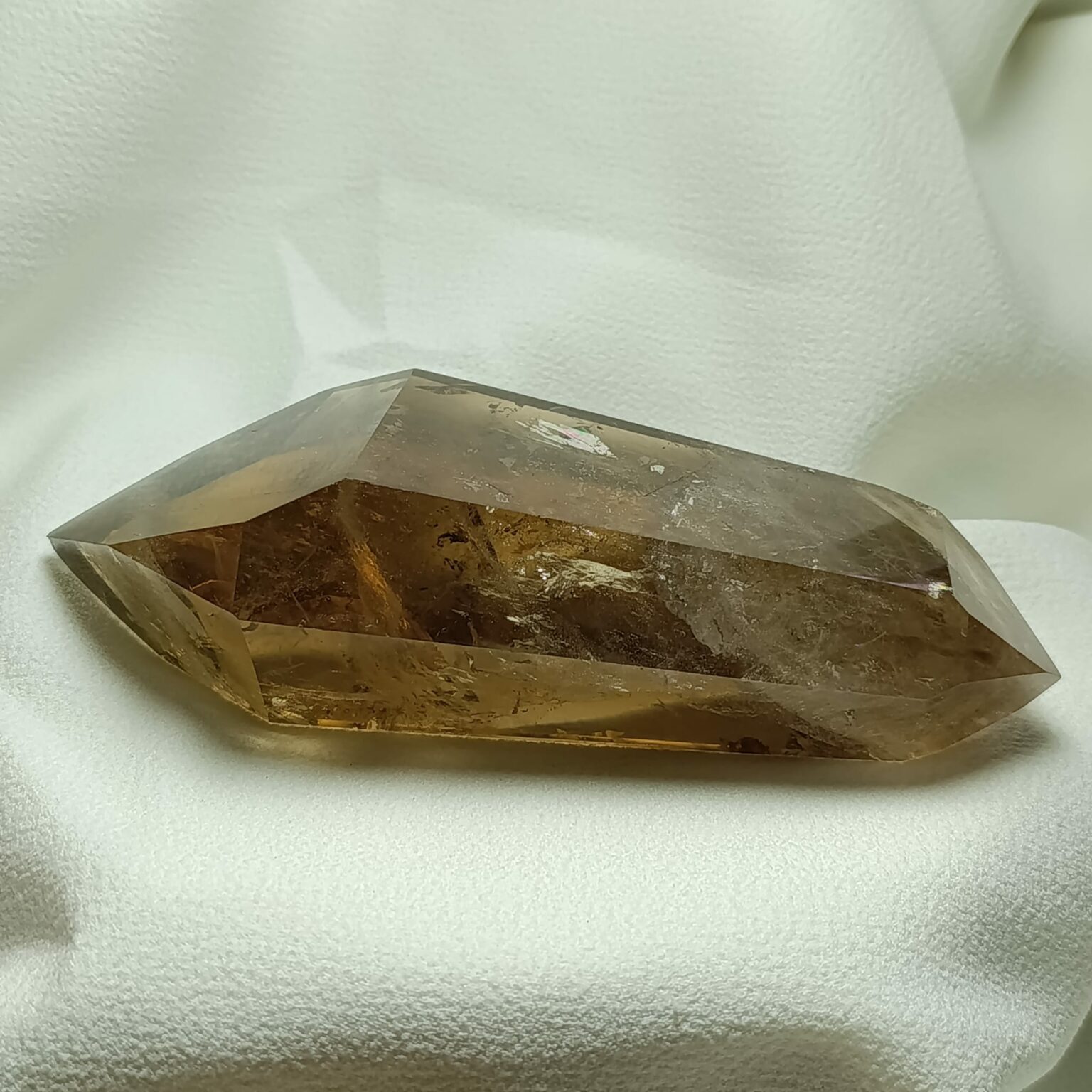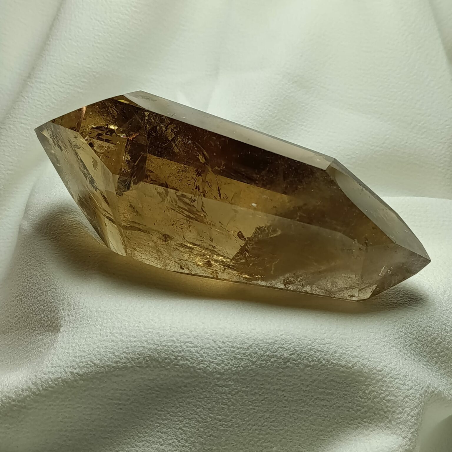 El cuarzo citrino tiene dureza de 7 en la escala de Mohs. Sistema Trigonal. Red hexagonal.