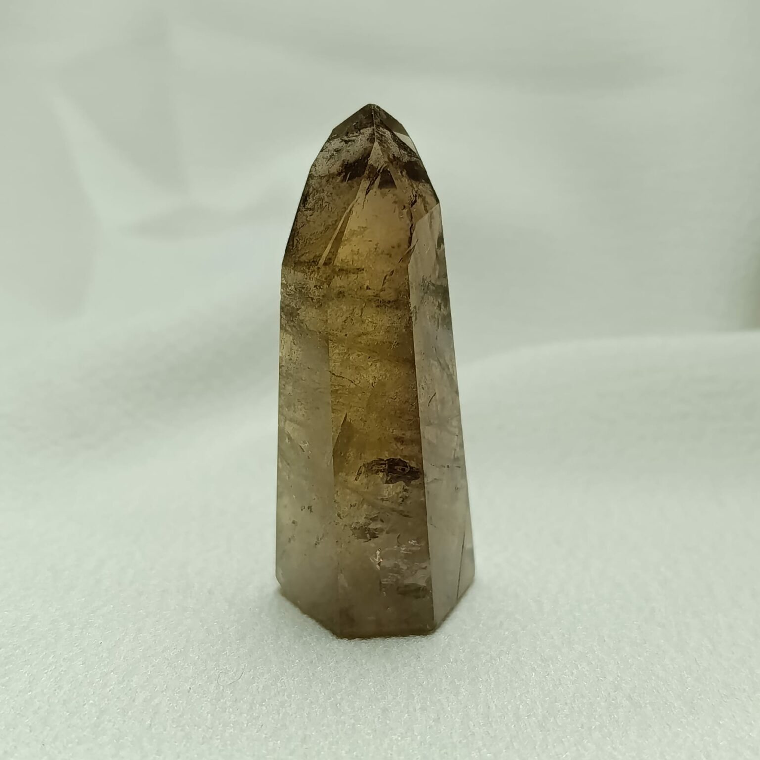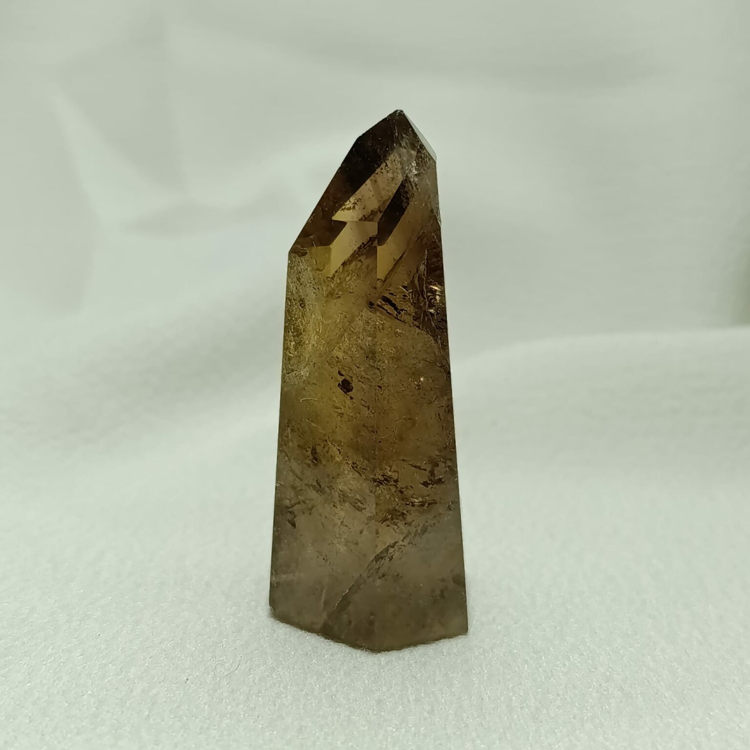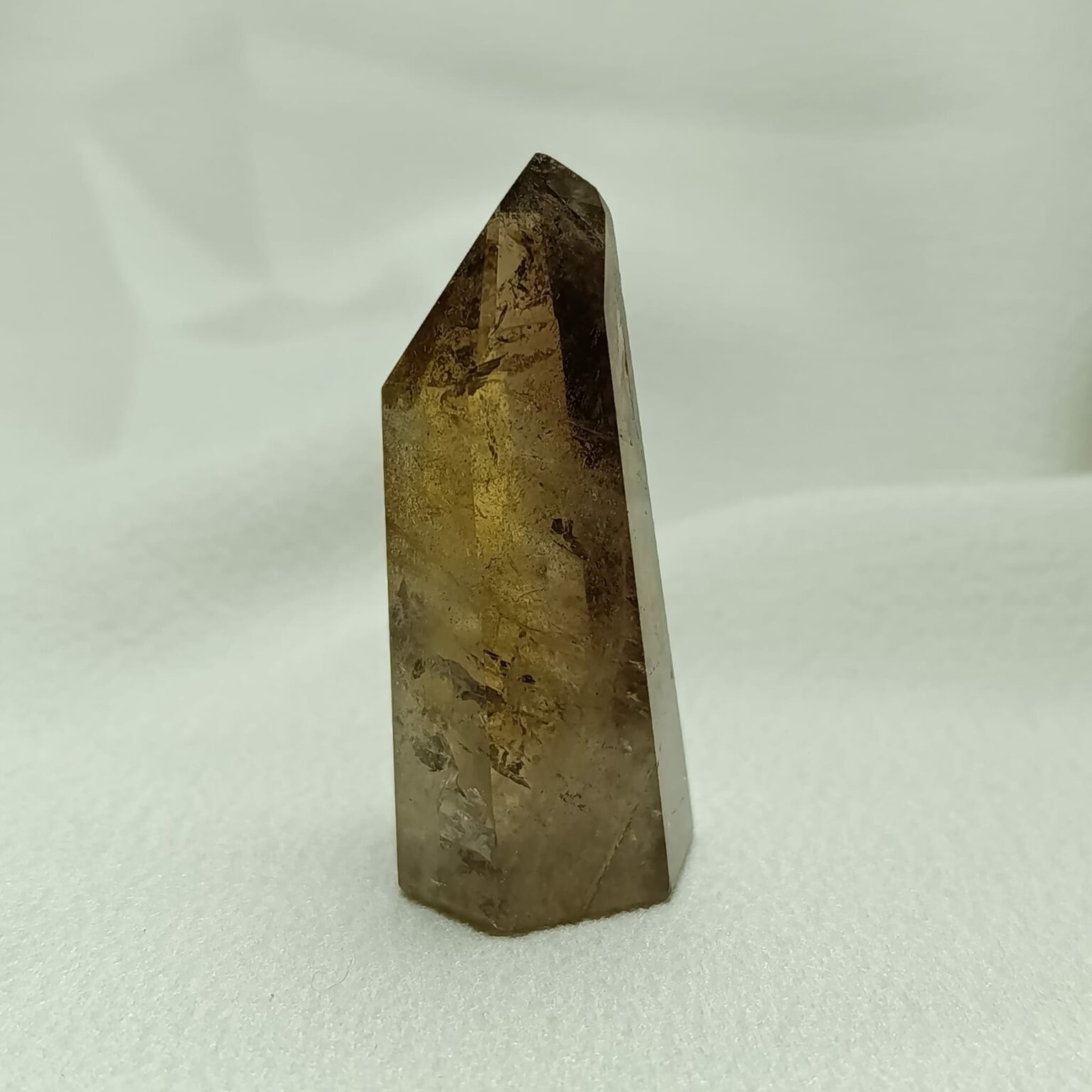 El cuarzo citrino tiene dureza de 7 en la escala de Mohs. Sistema Trigonal. Pieza de color amarillo miel hasta amarillos ahumados. Coherencia vibratoria estable, sin saturación térmica ni ruptura de red.
