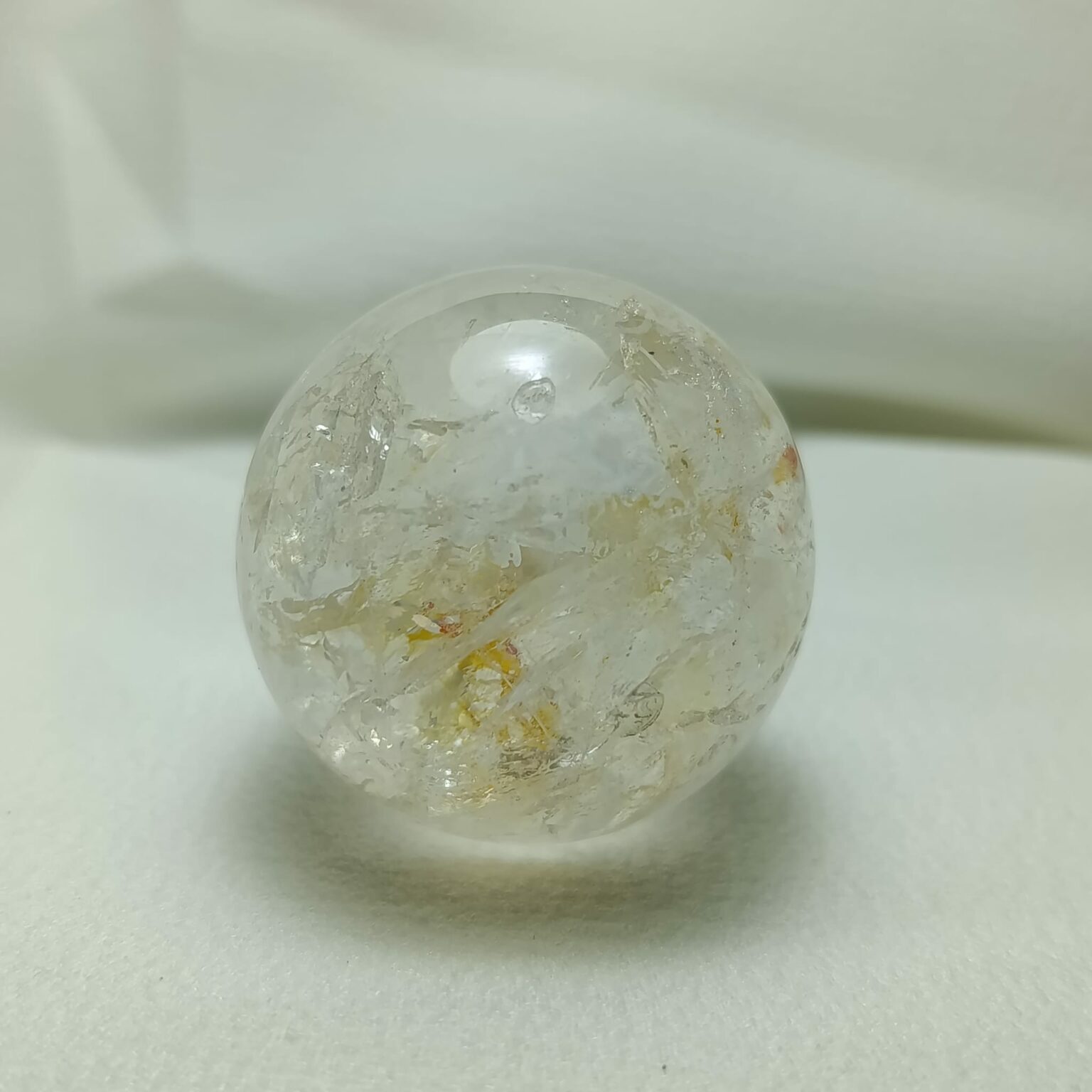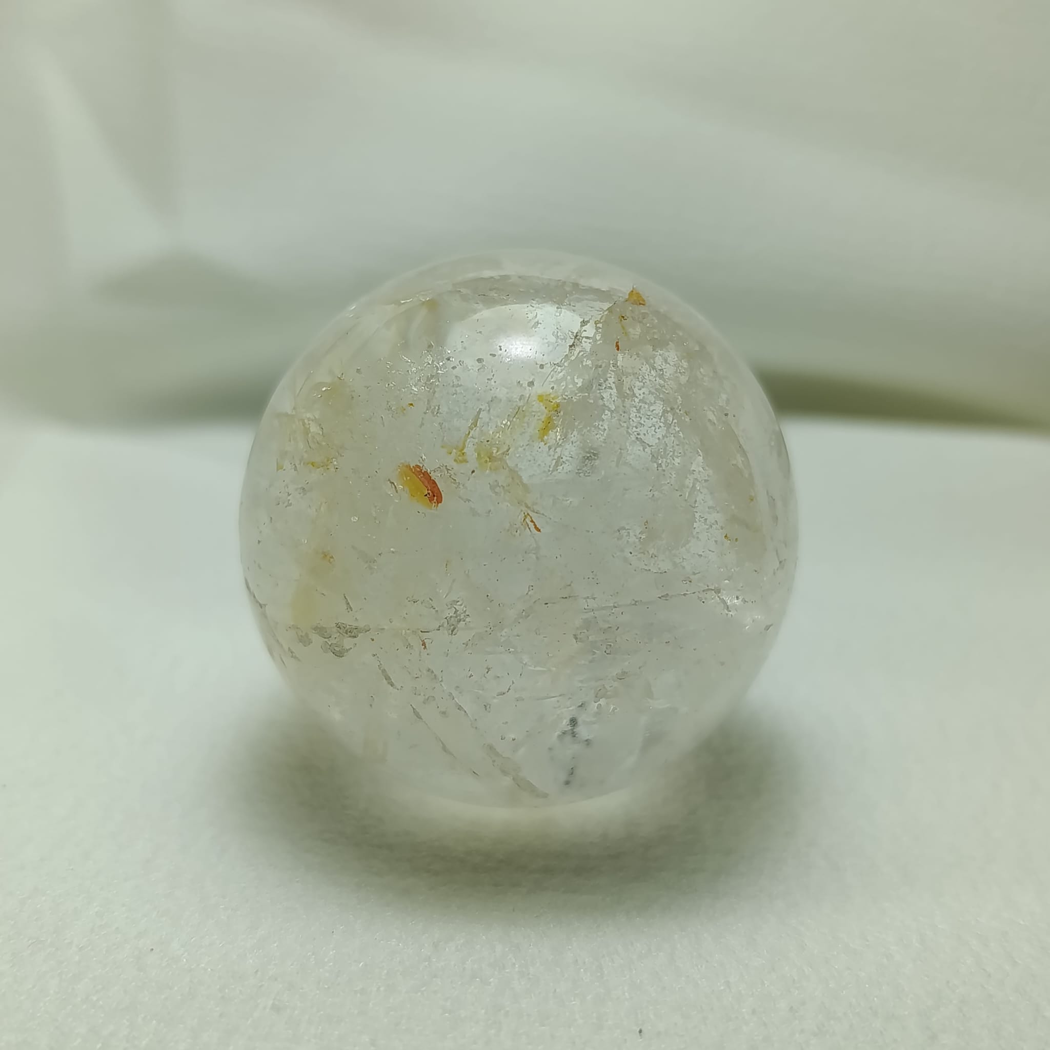 Cuarzo hialino en esfera pulida. Sistema trigonal (red hexagonal). Dureza 7 (Mohs)