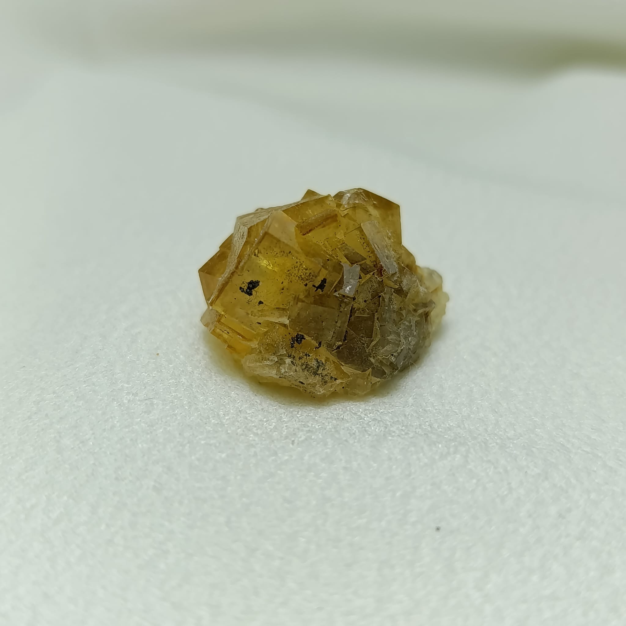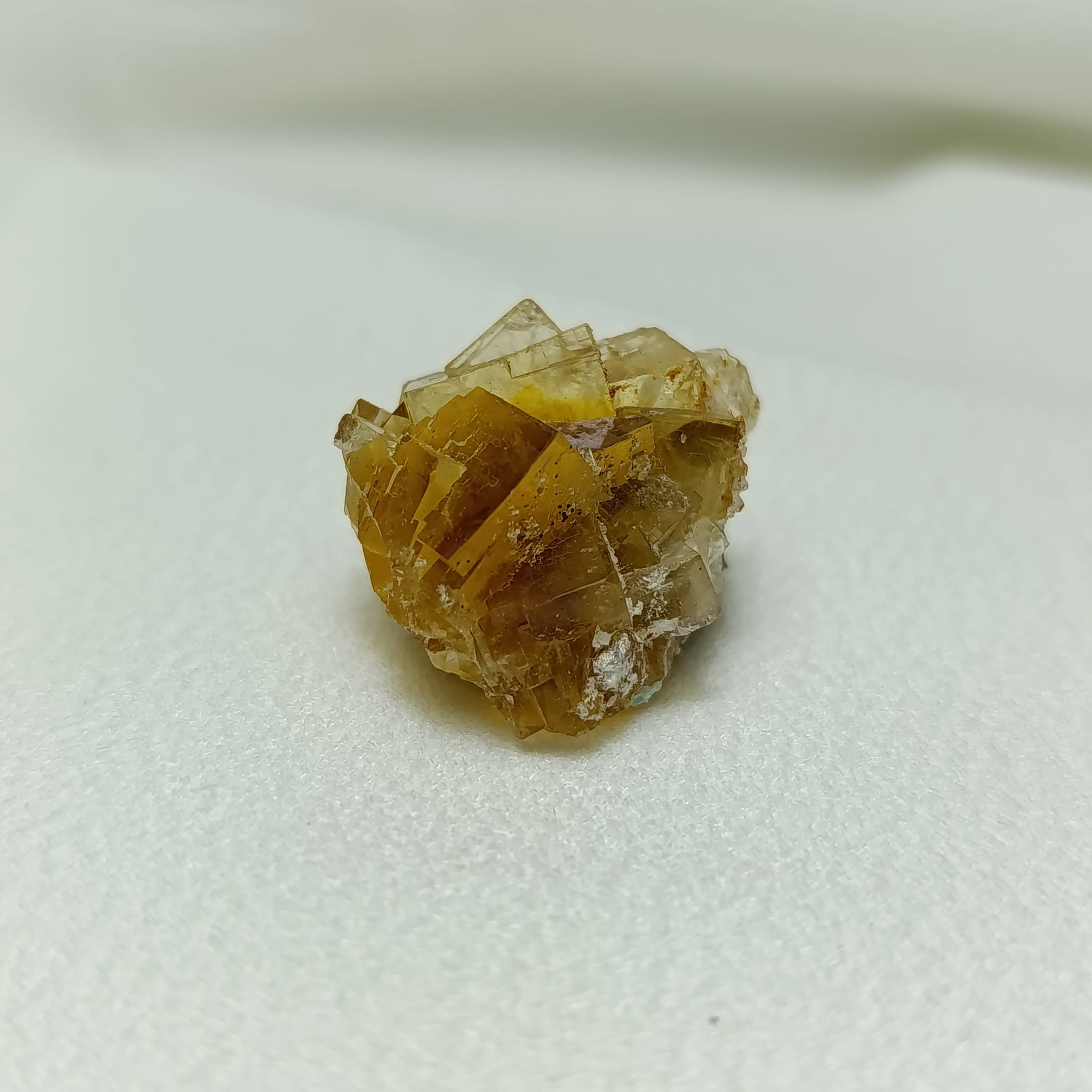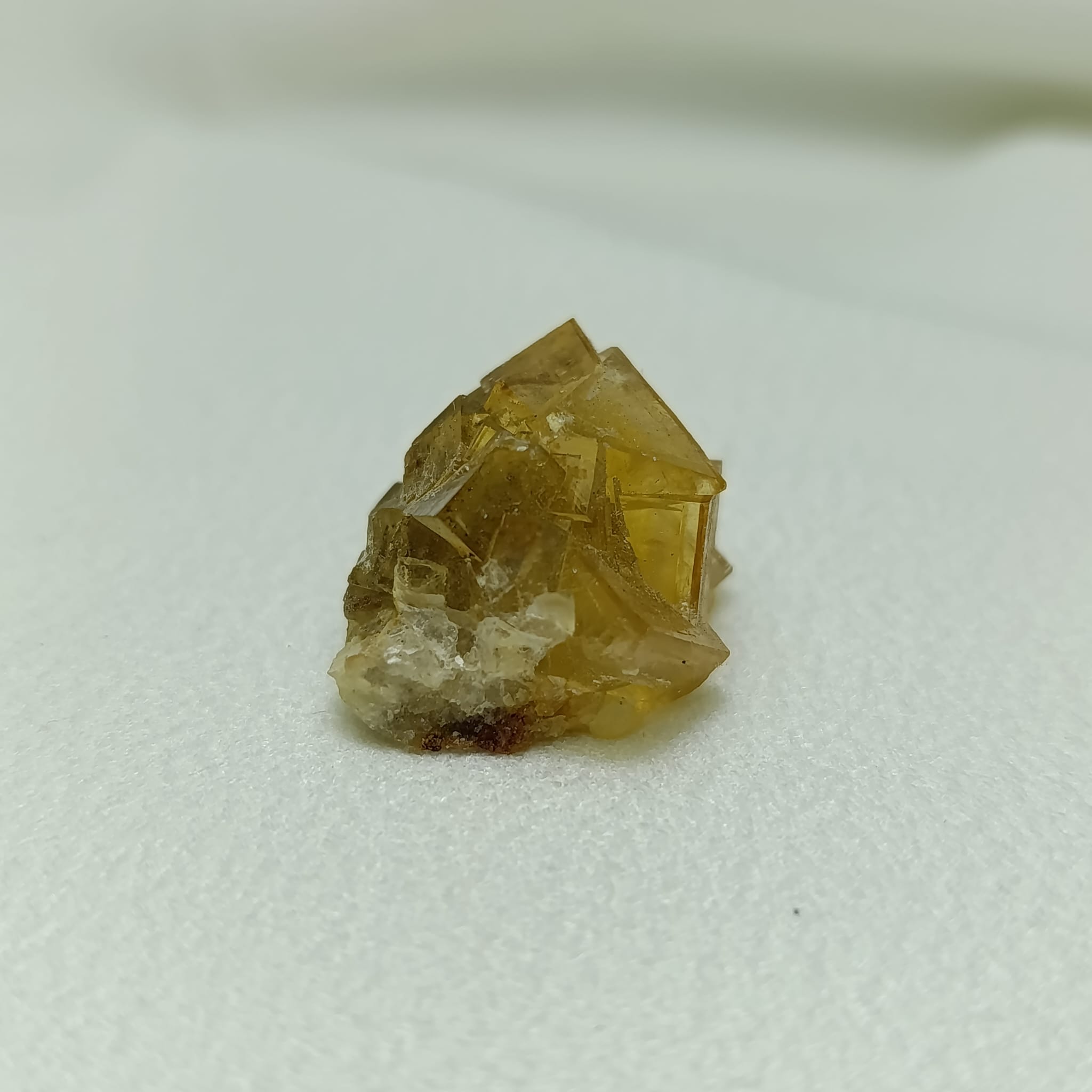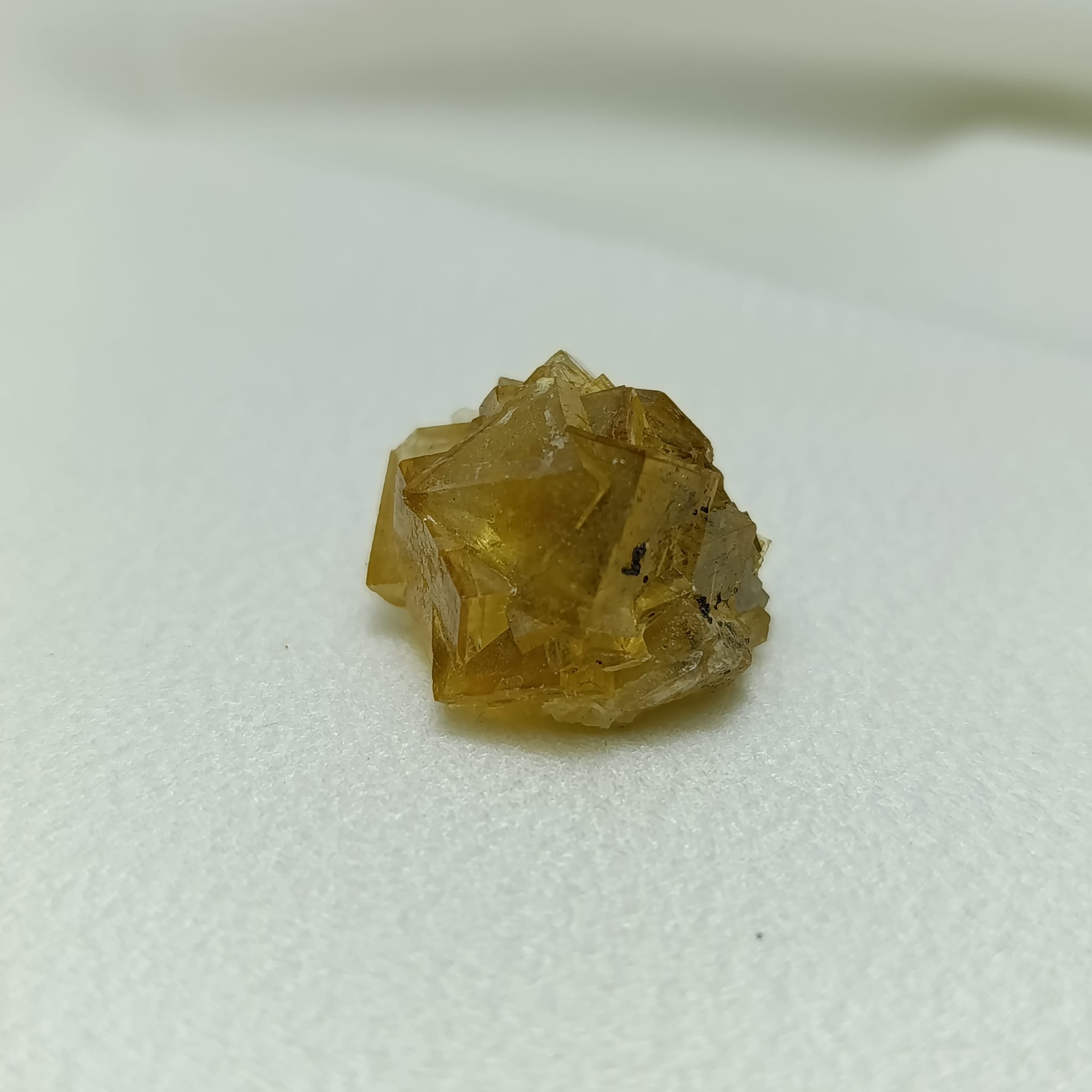 Pieza de fluorita amarilla. Sistema cristalino cúbico (isométrico). Dureza 4 (Mohs)