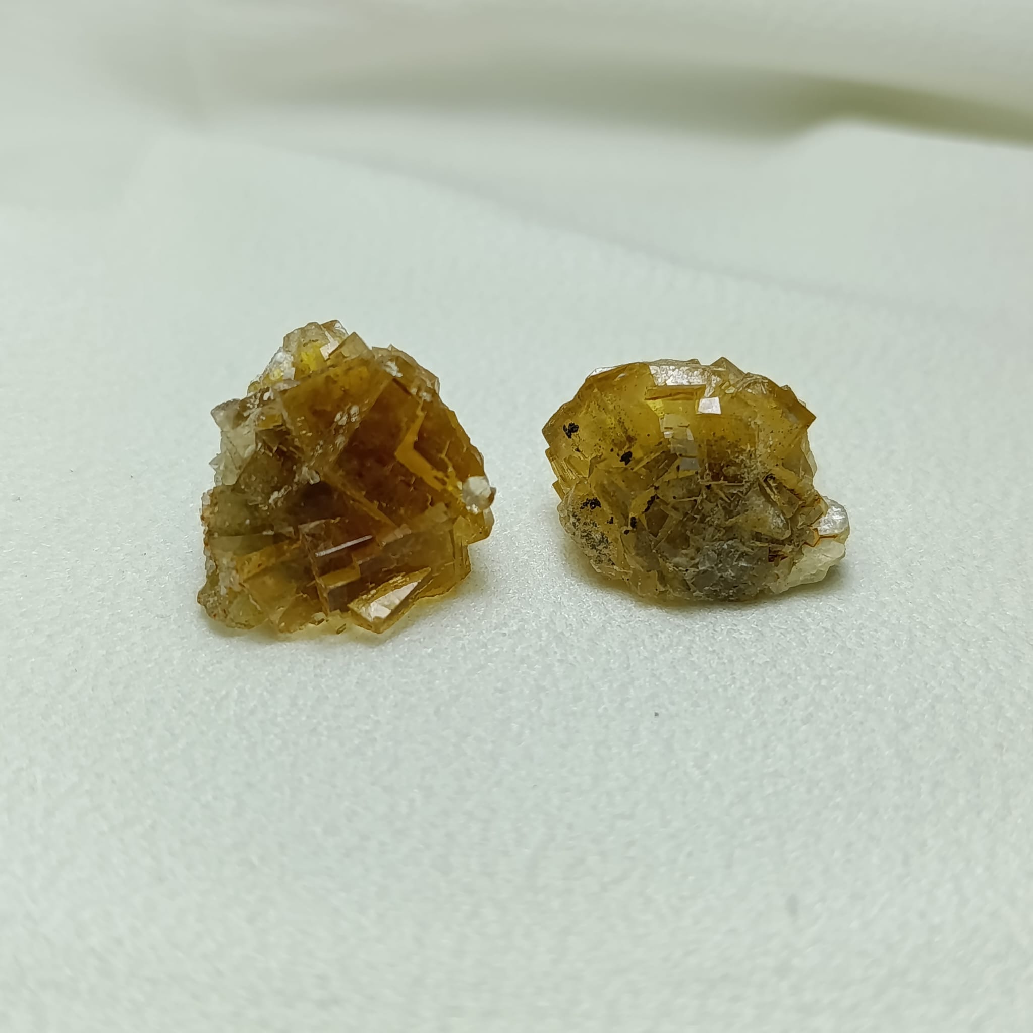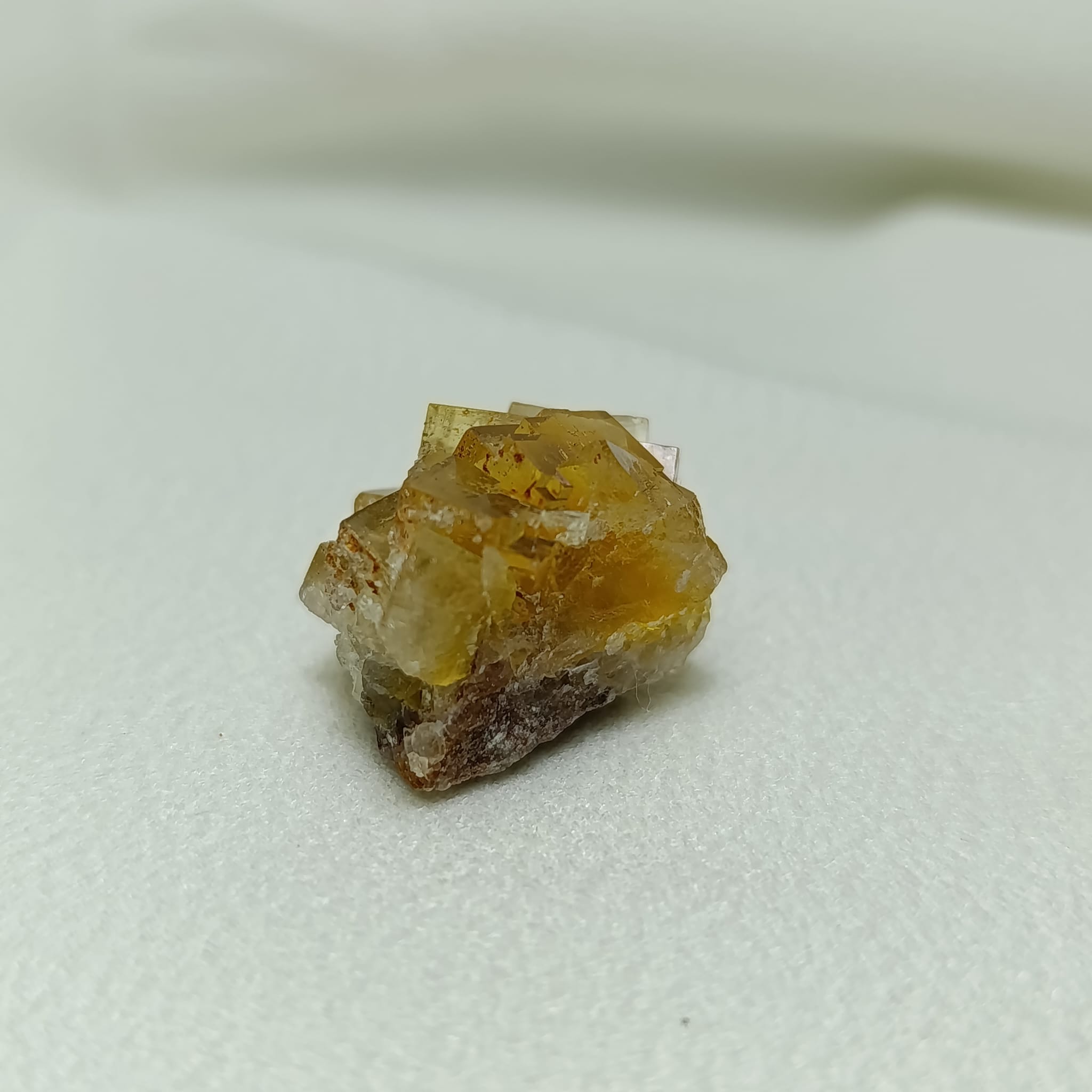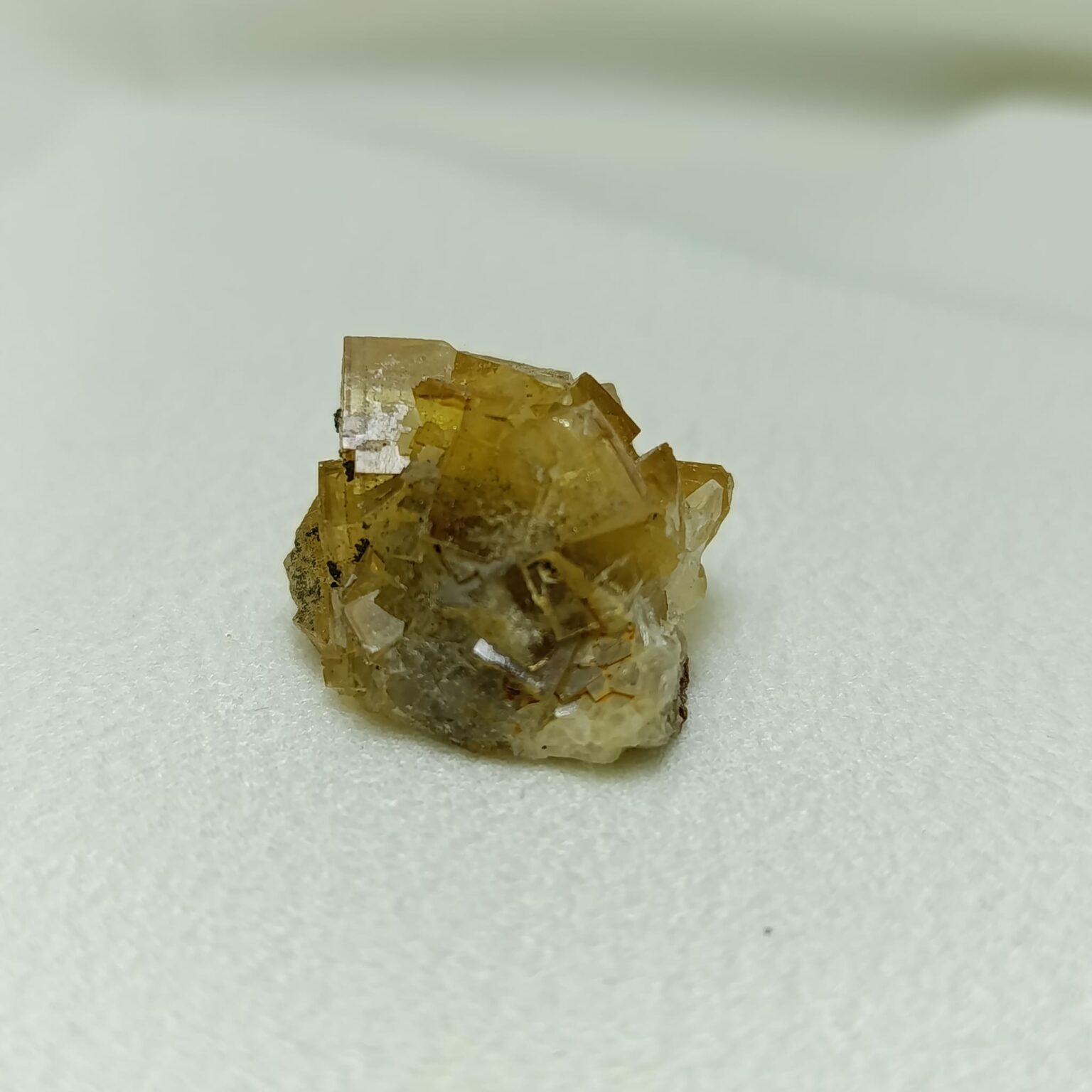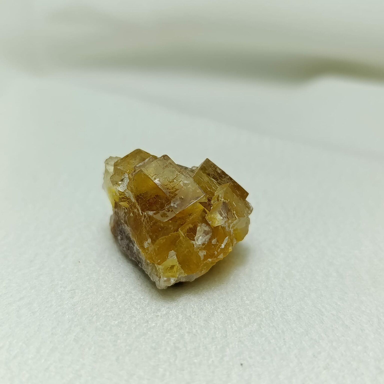 Pieza de fluorita amarilla. Sistema cristalino cúbico (isométrico). Dureza 4 (Mohs)