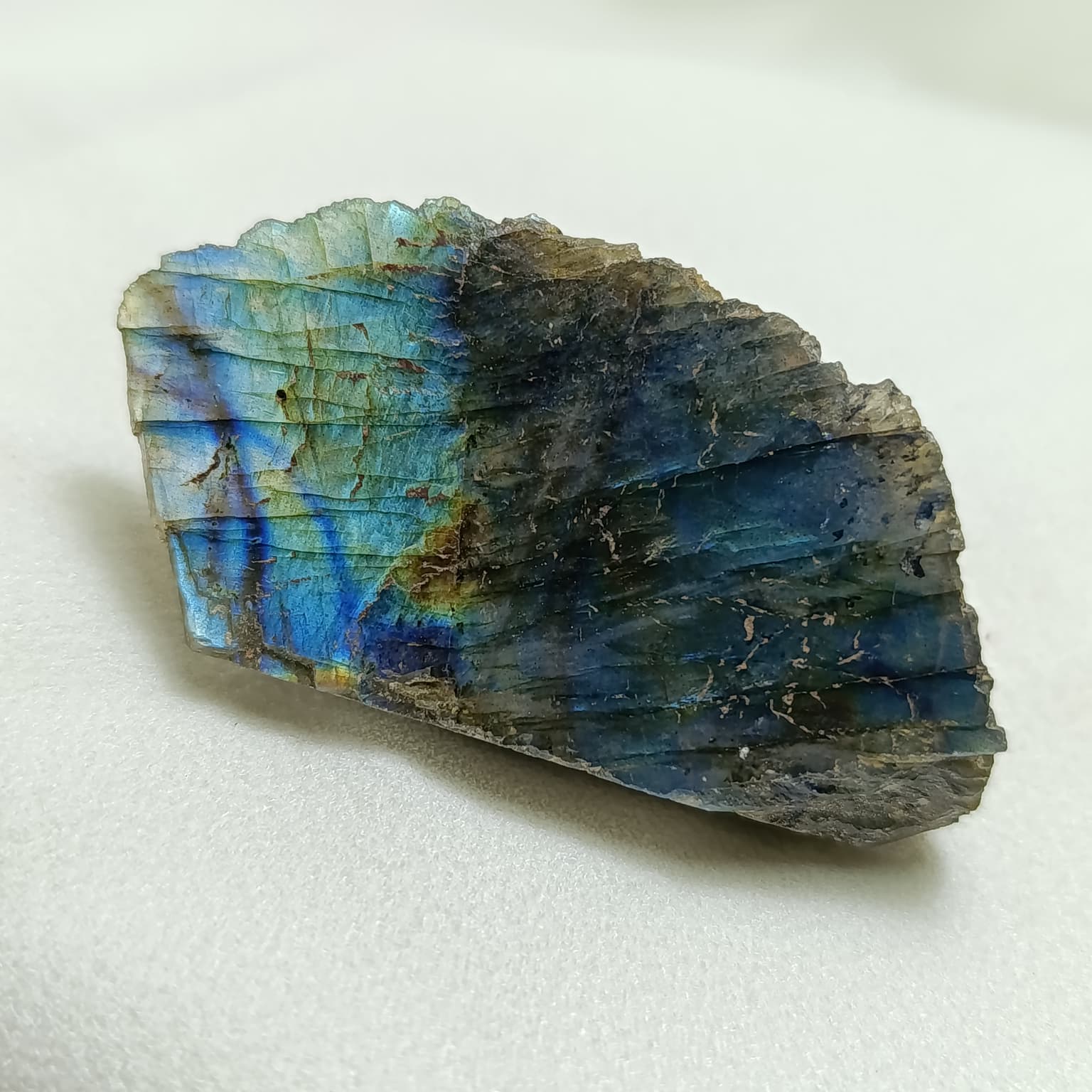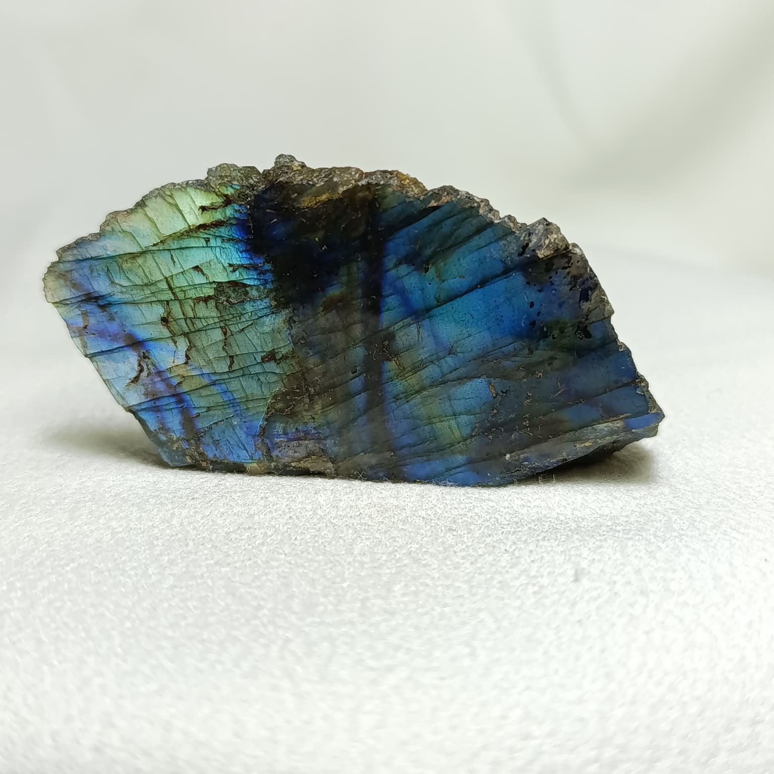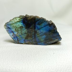 La labradorita es un cristal con sistema cristalino triclínico. Su base es antracita, destaca por su grisaceo oscuro y cuenta con una iridiscencia que dependiendo de la pieza genera diferentes colores. Pieza indicada para para tratamientos de cristaloterapia y trabajo personal asociados a centros vitales superiores.