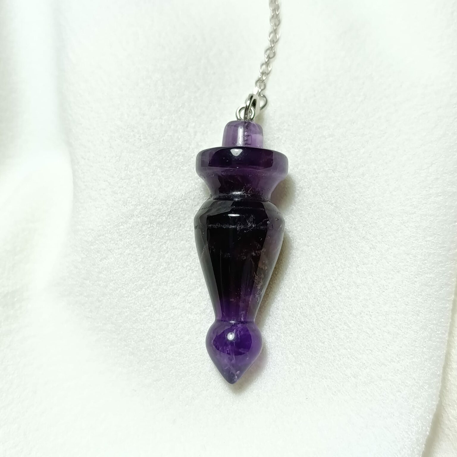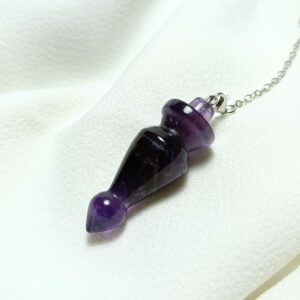Péndulo de amatista. Emisor y receptor. Nivel Avanzado. Radiestesia médica y terapias presenciales. Largo 5,5cm. Peso 17 gr.