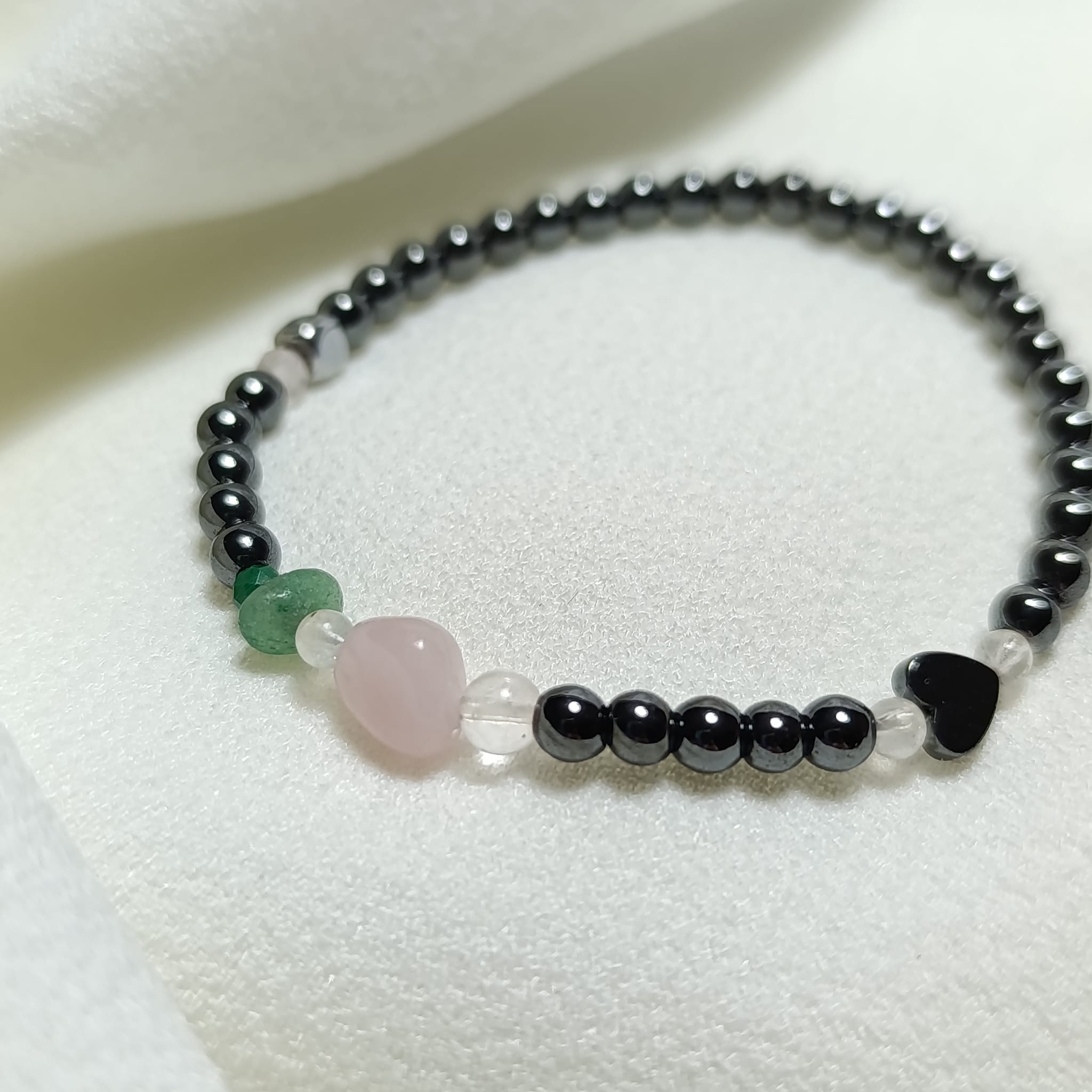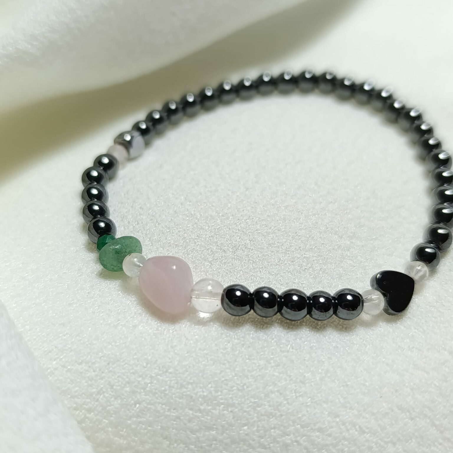 Pulsera de joyería energética. Cristales que aportan energía de bienestar, amor, y compasión hacia uno mismo.
