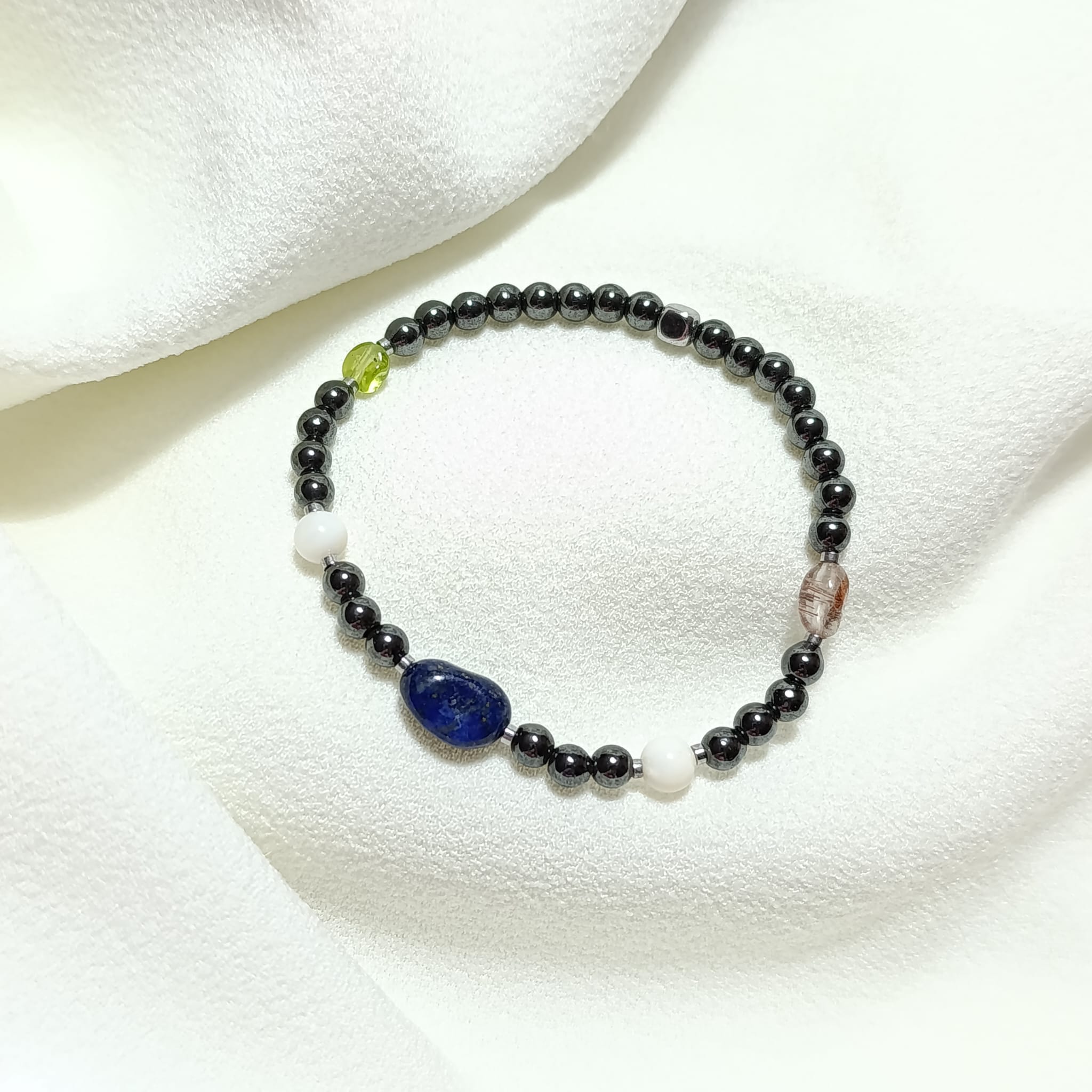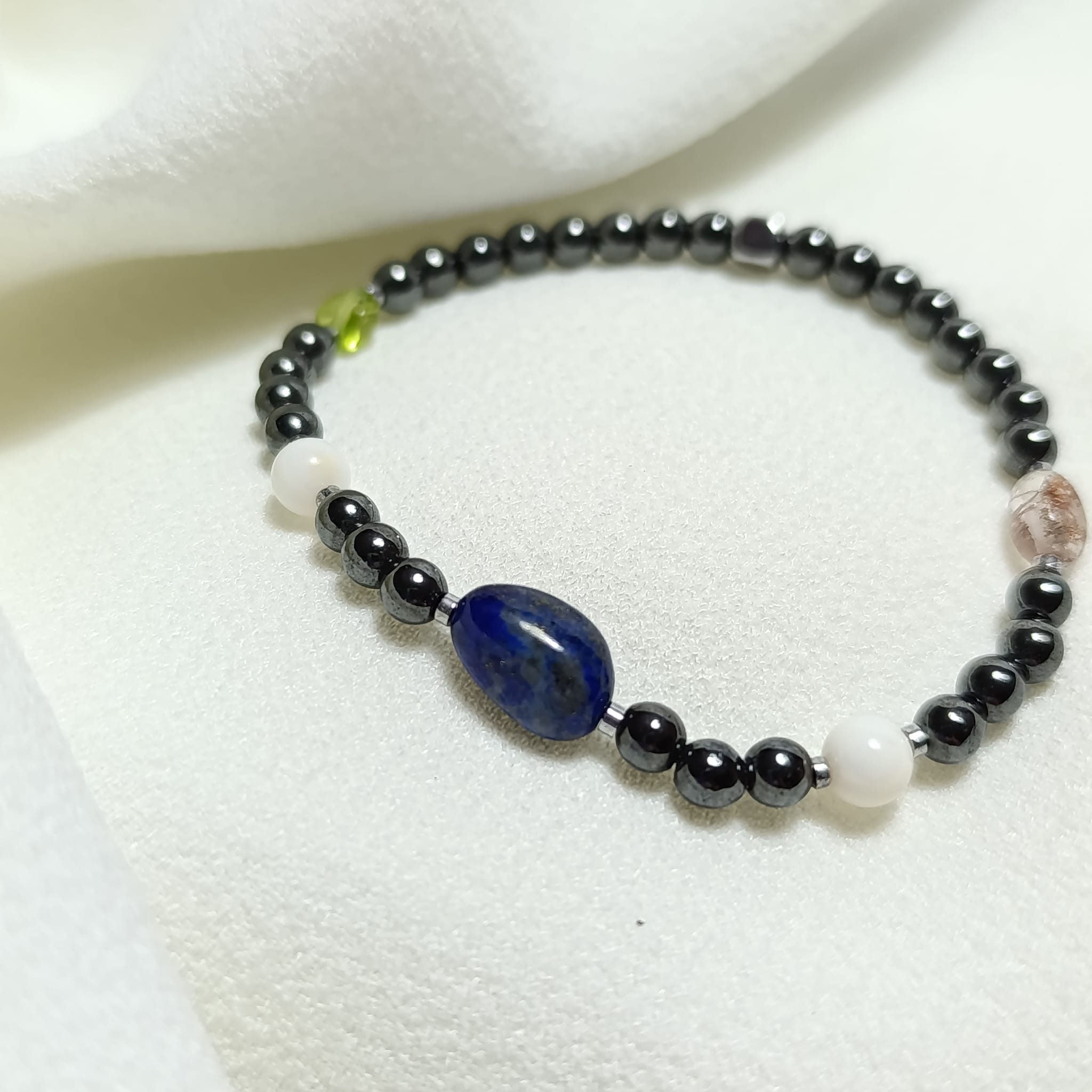 Pulsera de joyería energética. Cristales que aportan energía para recuperar la expresión la comunicación y la honestidad propia.