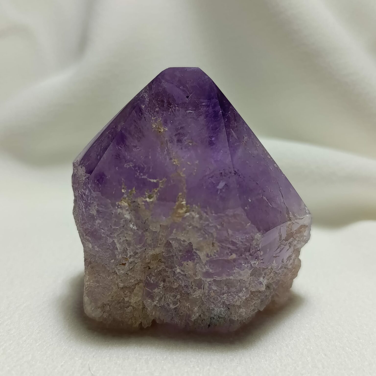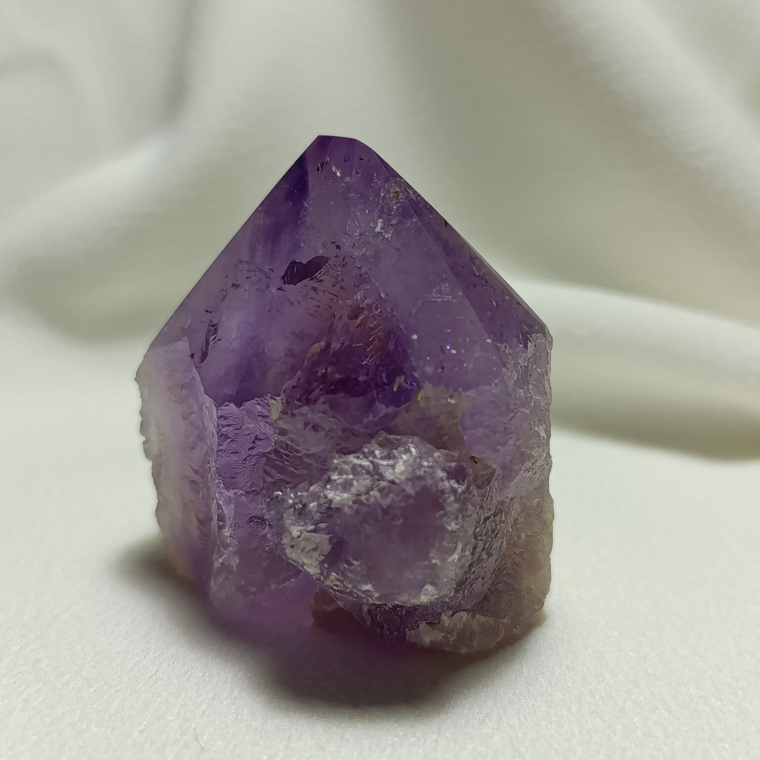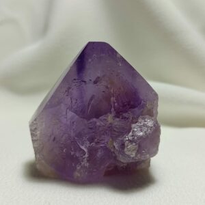 Cuarzo amatista en punta natural. Sistema trigonal (red hexagonal). Dureza 7 (Mohs)